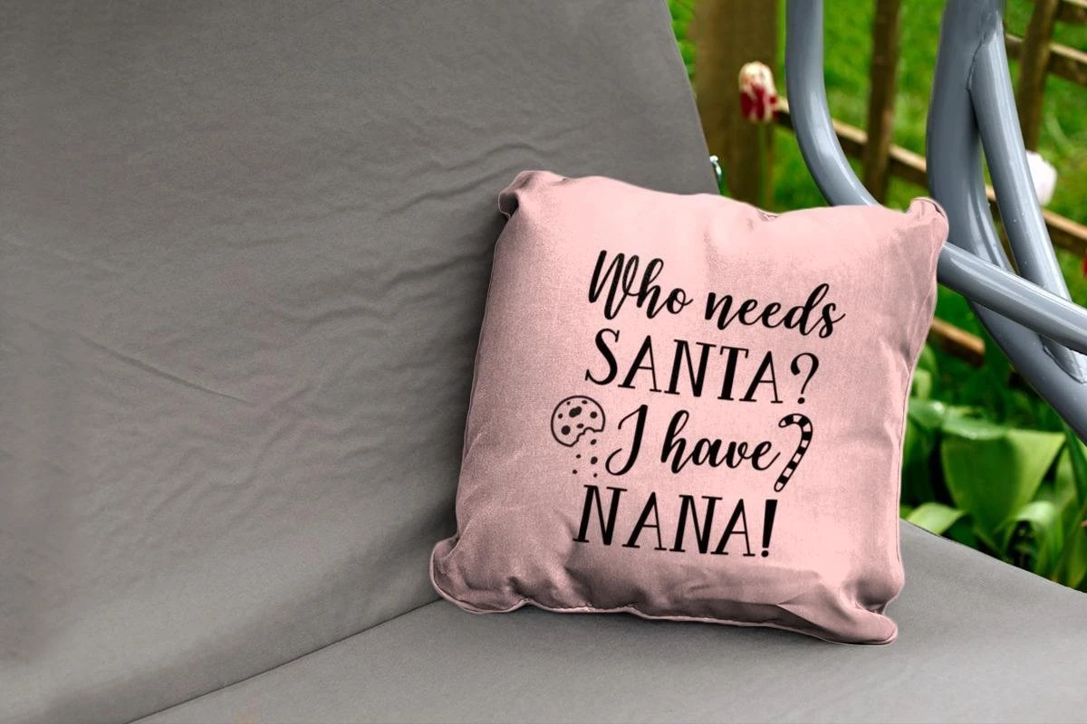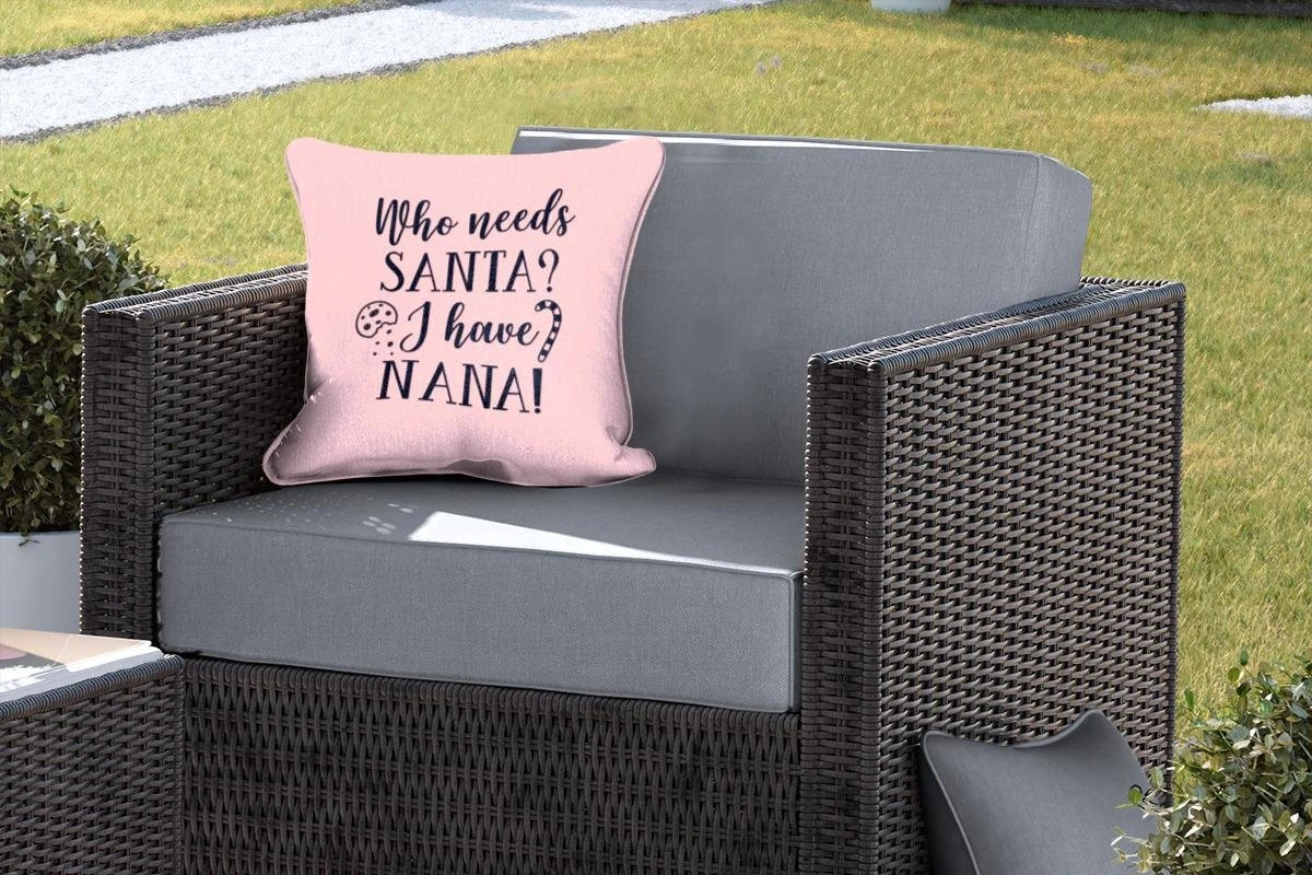 Coussins D’extérieur – Jardin – Citation De Noël Qui A Besoin Du Père Noël ? J’ai Nana! Sur Fond Rose – 40×40 Cm
