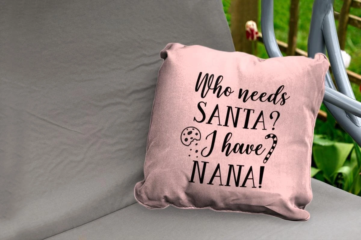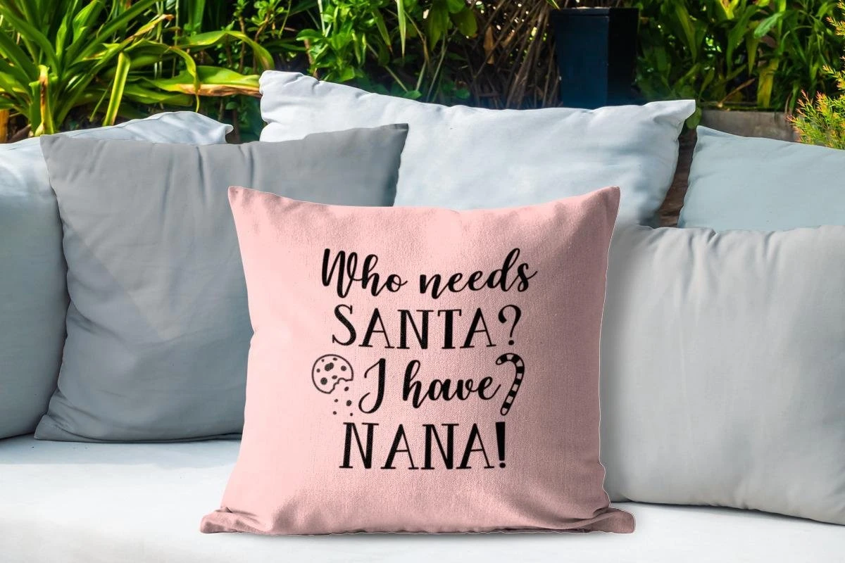 Coussins D’extérieur – Jardin – Citation De Noël Qui A Besoin Du Père Noël ? J’ai Nana! Sur Fond Rose – 50×50 Cm