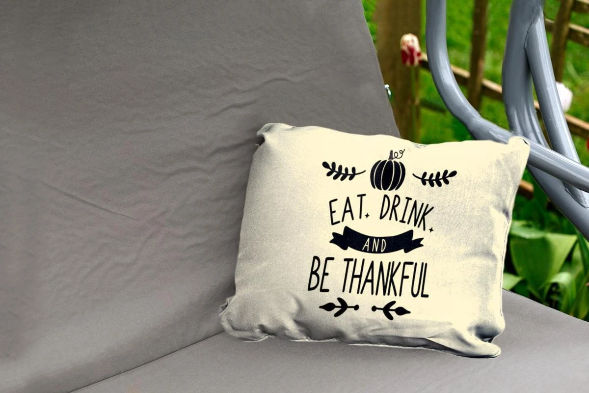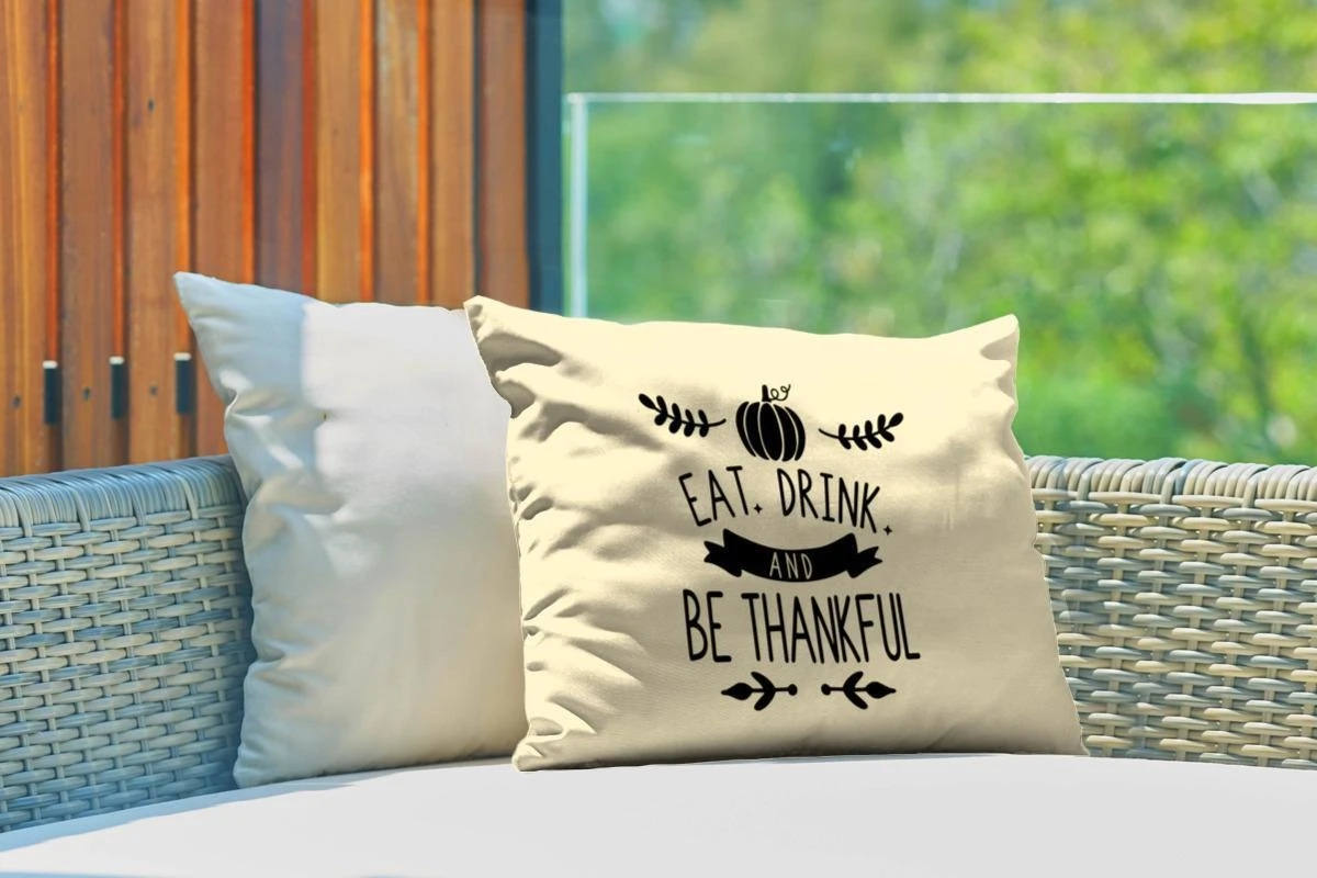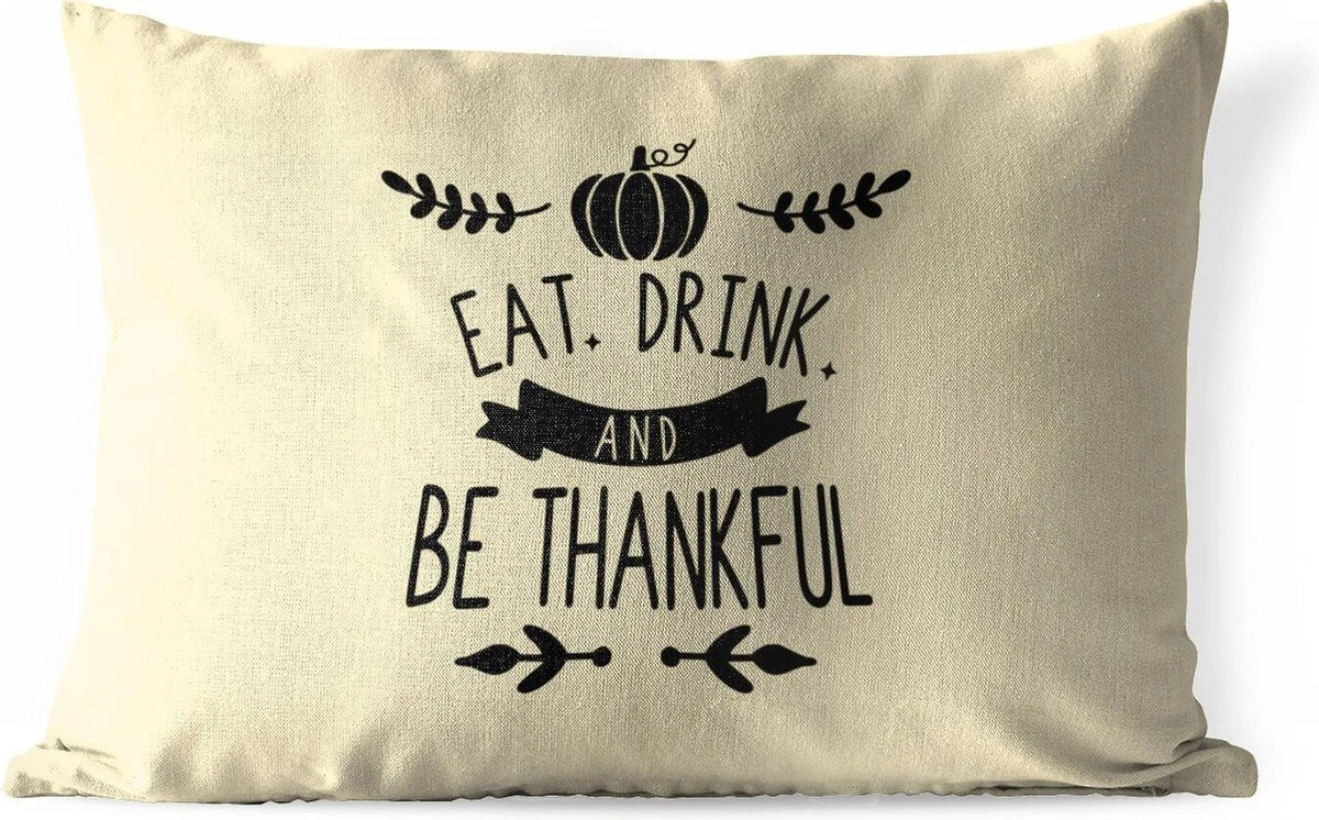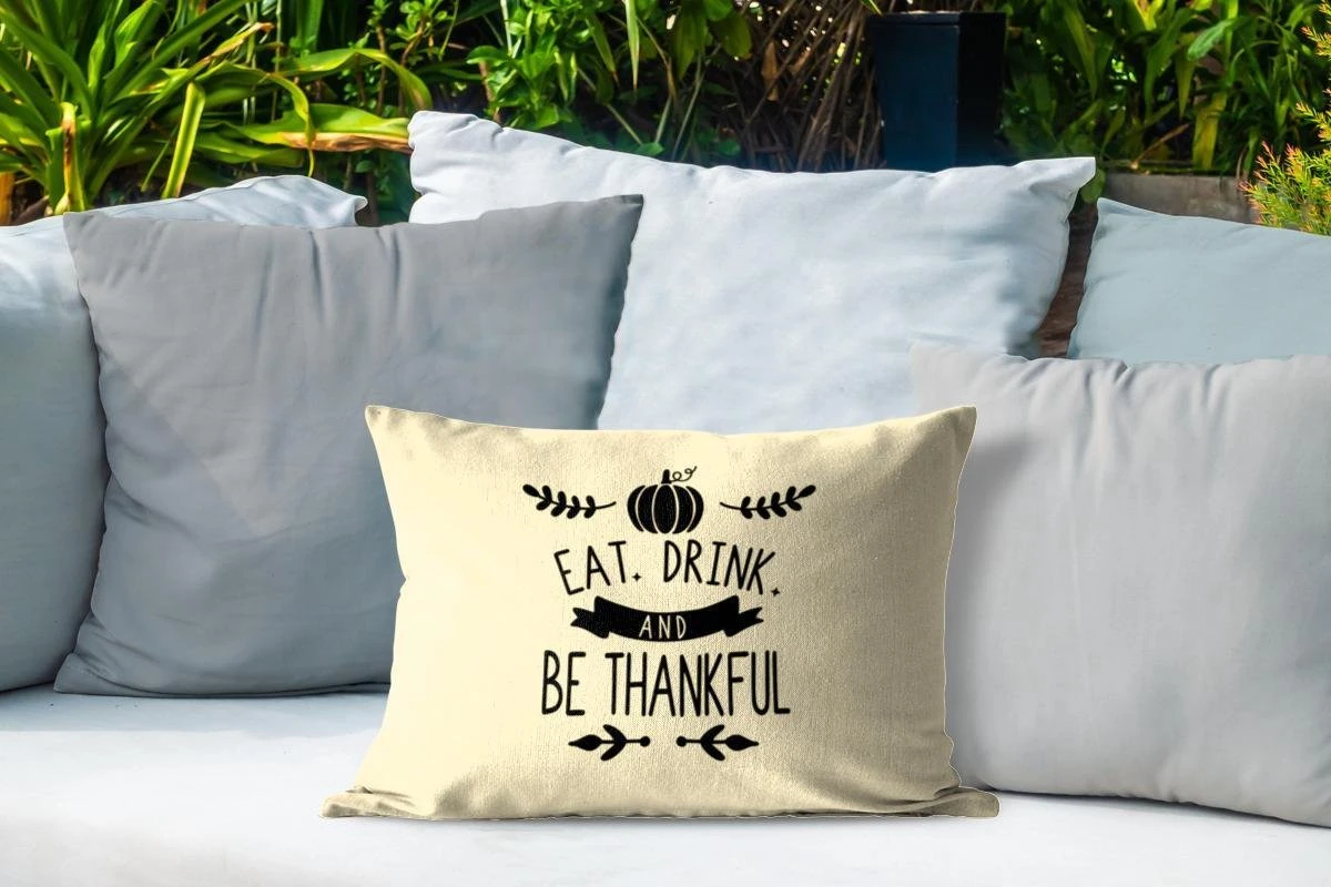 Coussins D’extérieur – Jardin – Citation Manger, Boire Et être Reconnaissant Décoration Murale Noël Jaune Pastel – 50×30 Cm