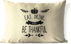 Coussins D’extérieur – Jardin – Citation Manger, Boire Et être Reconnaissant Décoration Murale Noël Jaune Pastel – 60×40 Cm