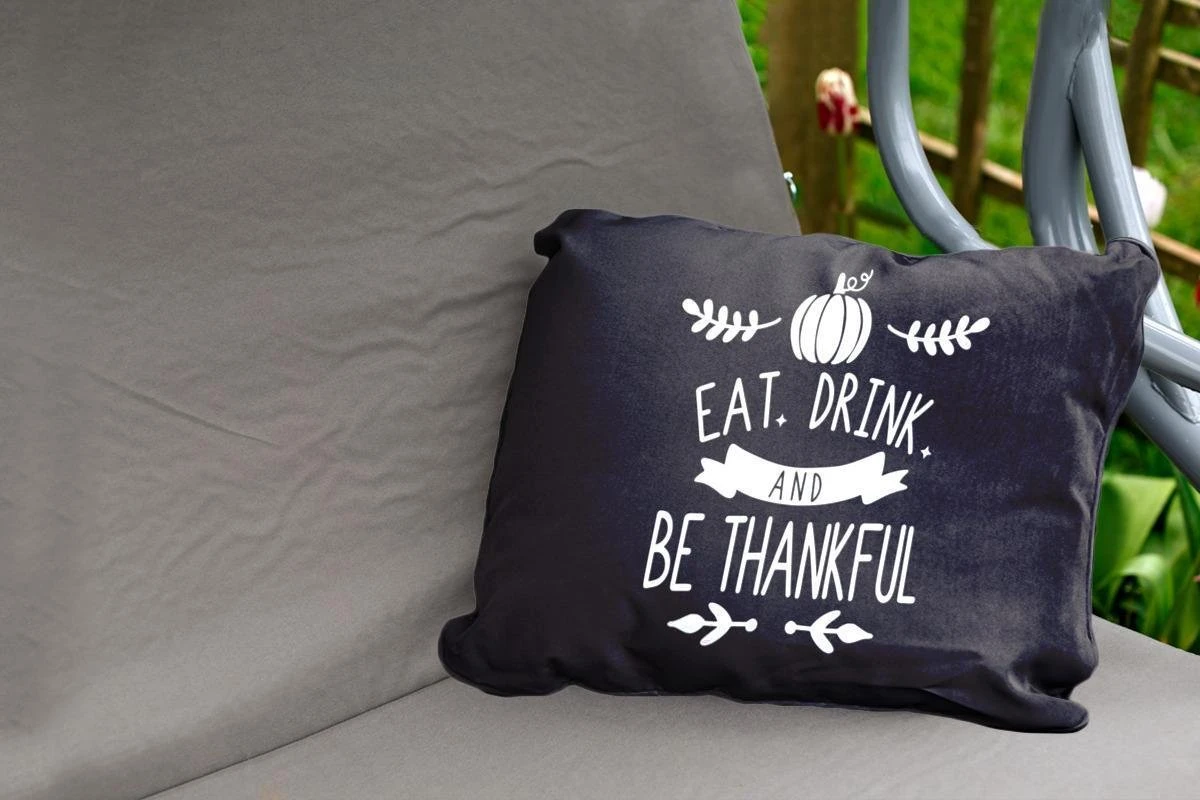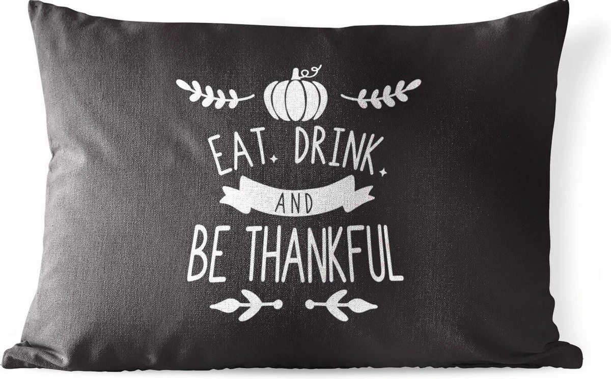 Coussins D’extérieur – Jardin – Citation Manger, Boire Et être Reconnaissant Décoration Murale Noël Noir – 60×40 Cm