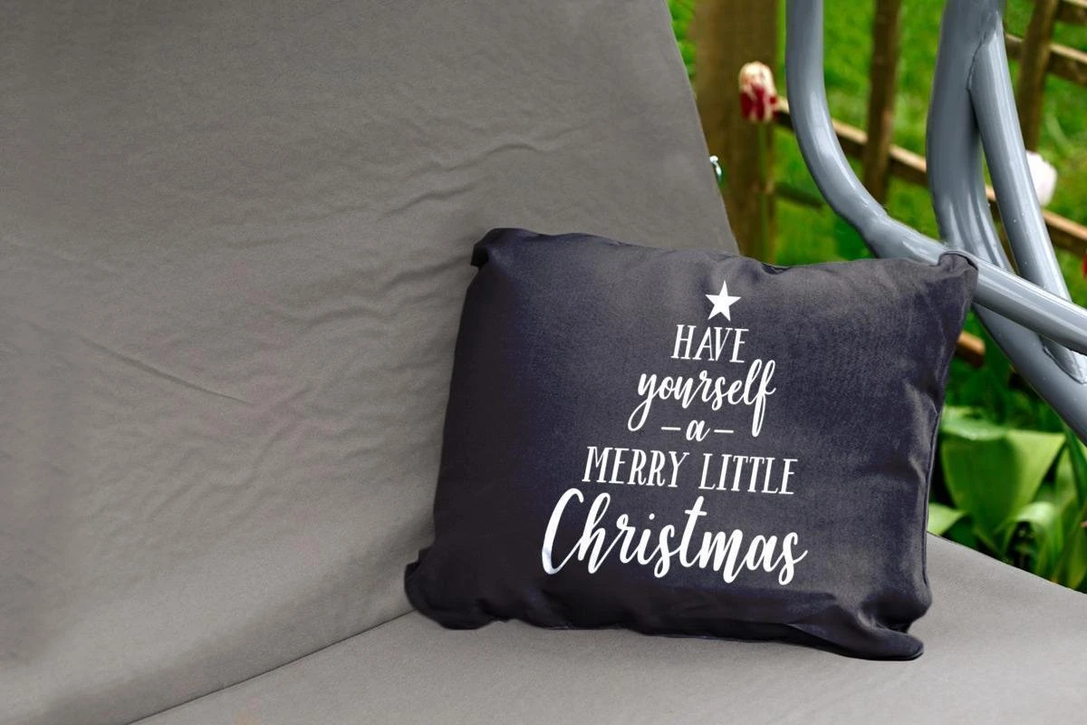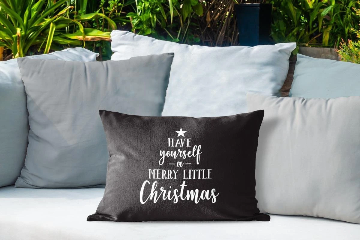 Coussins D’extérieur – Jardin – Citation Noël Passez Un Joyeux Petit Noël Sur Fond Noir – 50×30 Cm