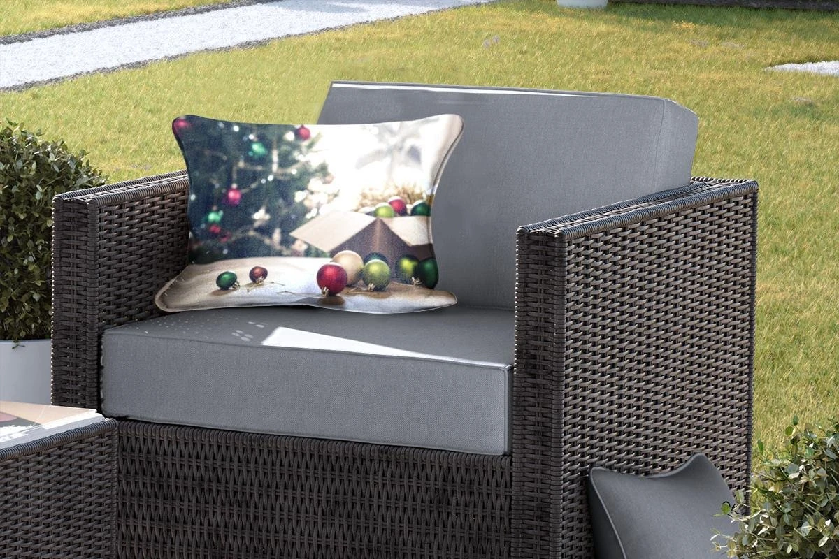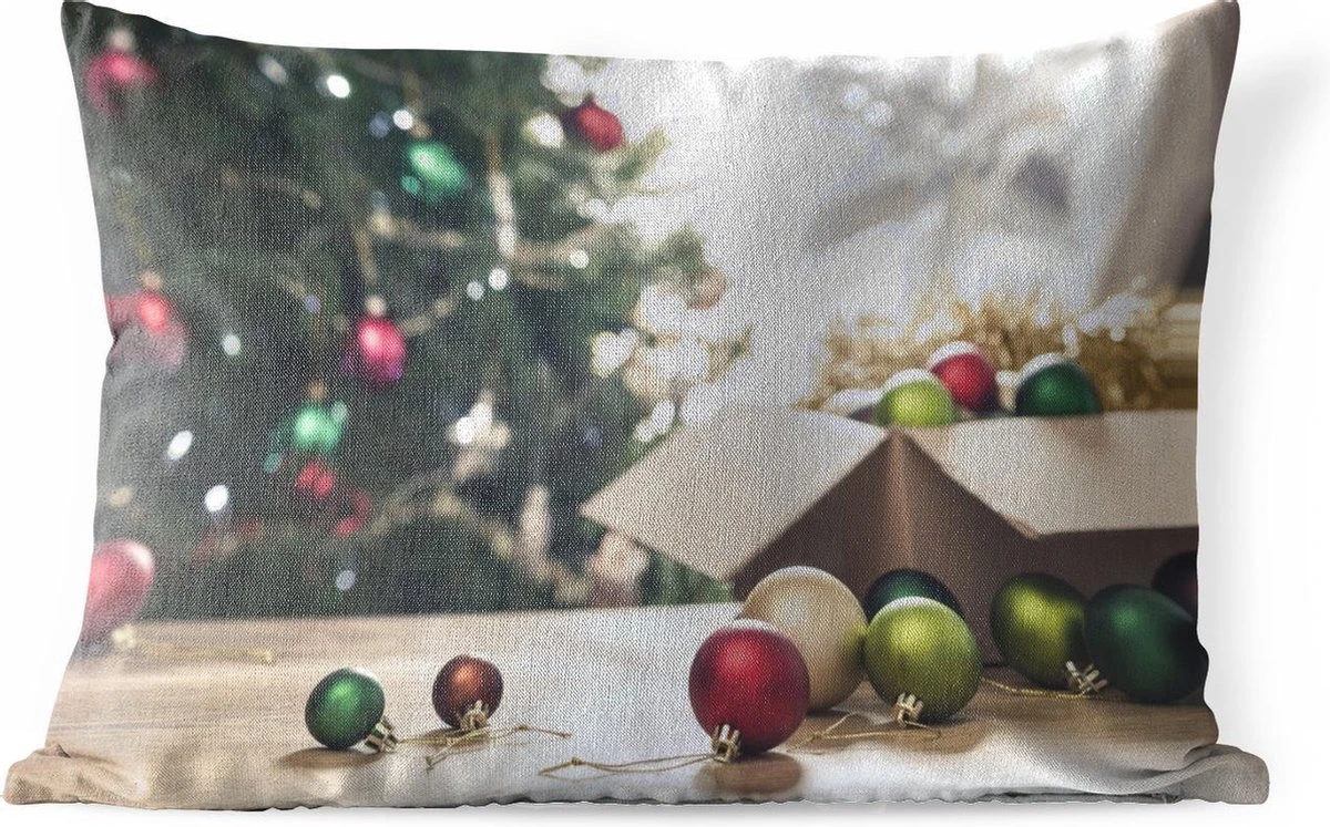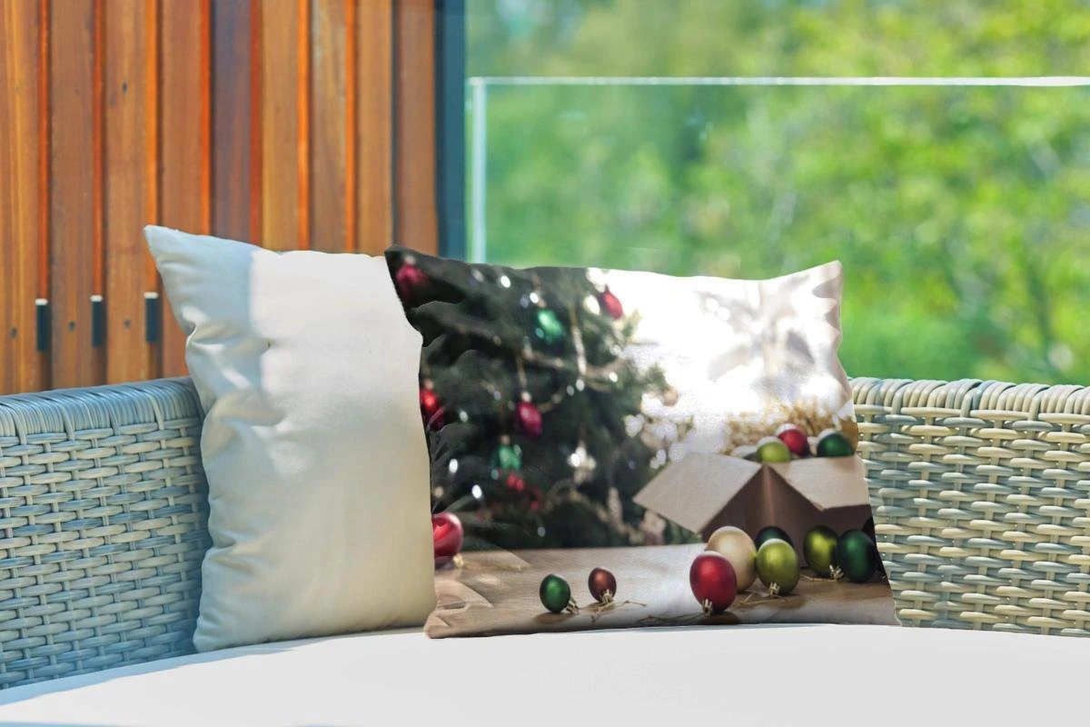 Coussins D’extérieur – Jardin – Les Boules De Noël Avec Un Sapin De Noël En Arrière-plan – 50×30 Cm