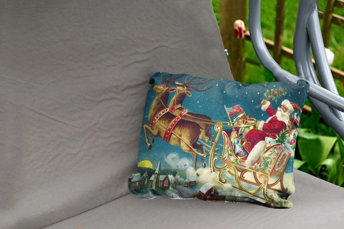 Coussins D’extérieur – Jardin – Père Noël Vintage Avec Traîneau Volant – 50×30 Cm