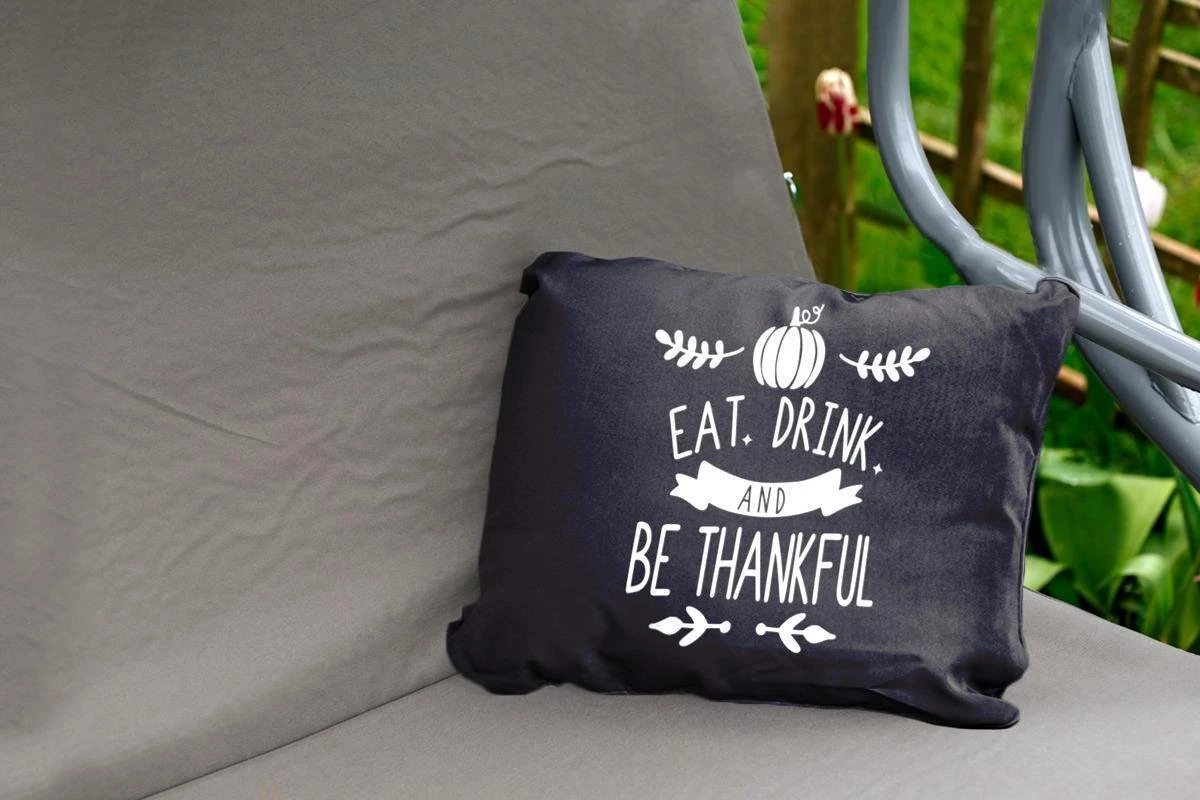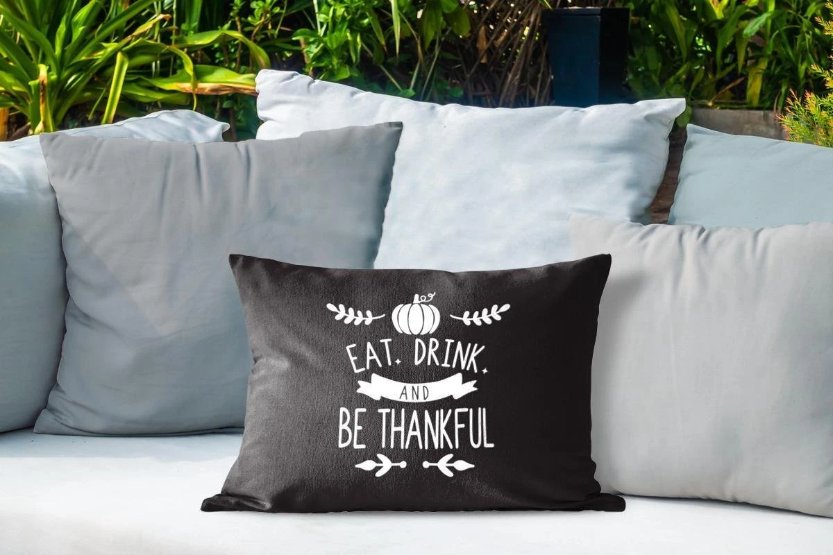 Coussins D’extérieur – Jardin – Quote Eat, Drink And Be Thankful Décoration Murale Noël Noir – 50×30 Cm