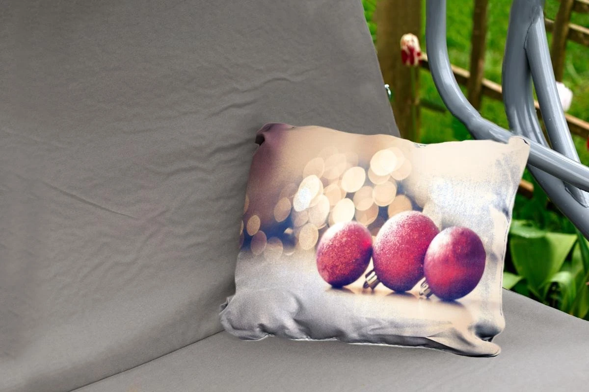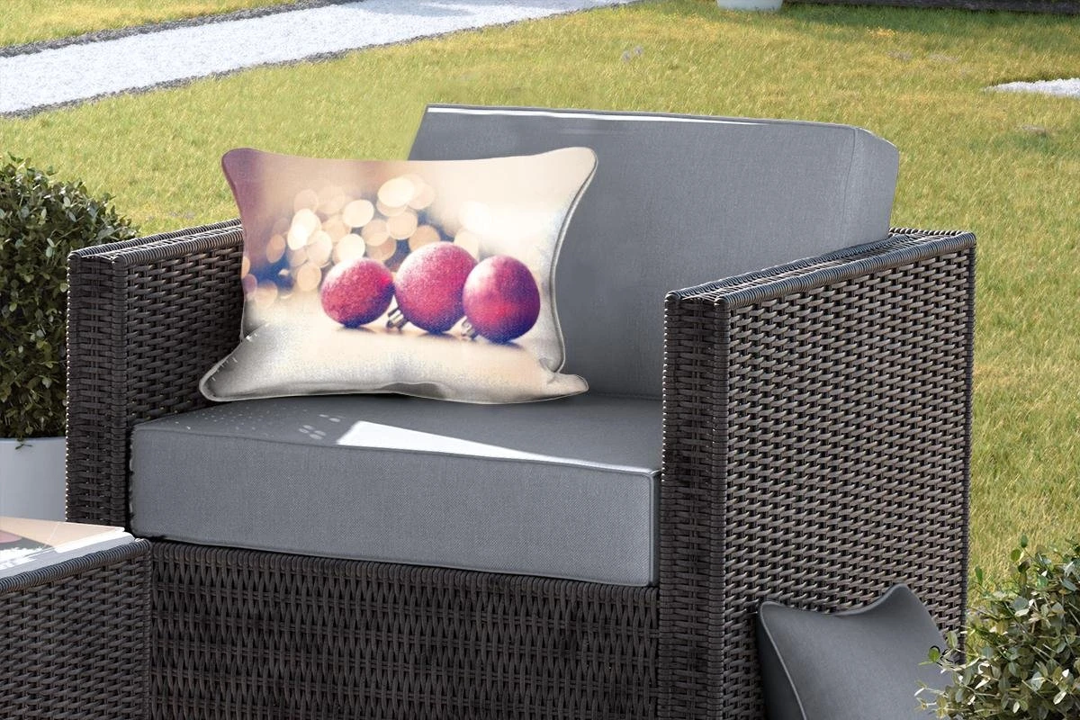 Coussins D’extérieur – Jardin – Trois Boules De Noël Rouges Et Lumières De Noël – 50×30 Cm