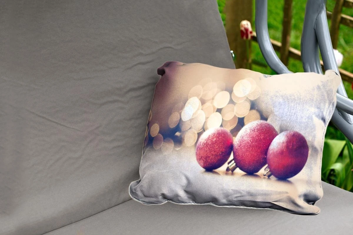 Coussins D’extérieur – Jardin – Trois Boules De Noël Rouges Et Lumières De Noël – 60×40 Cm