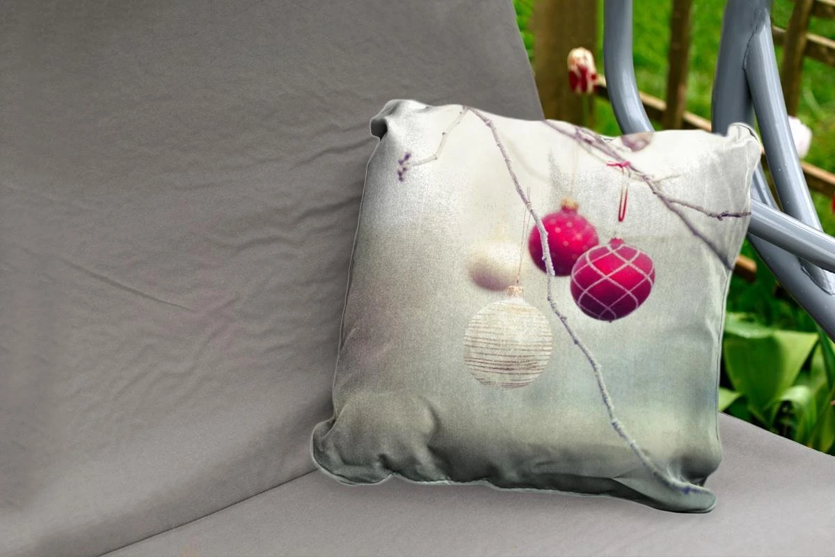 Coussins D’extérieur – Jardin – Un Gros Plan De Boules De Noël Colorées Lors D’une Journée Glaciale – 50×50 Cm