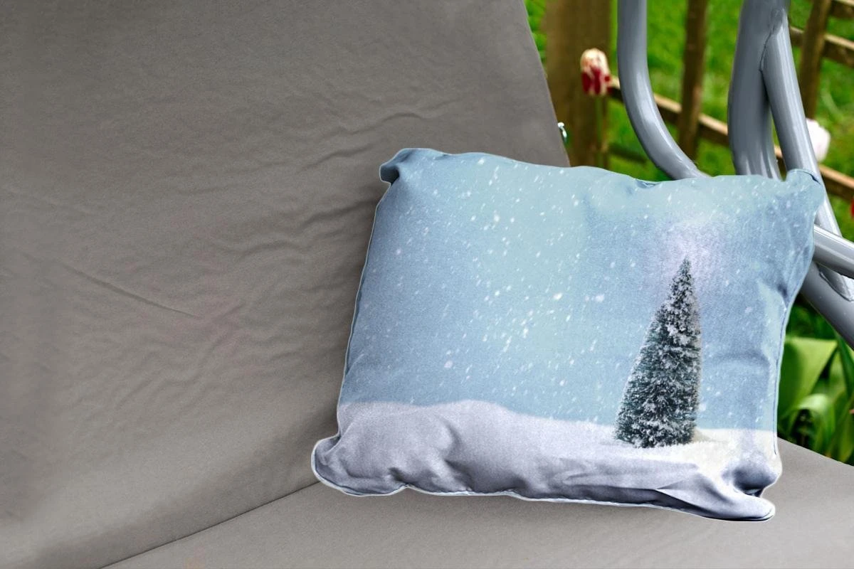 Coussins D’extérieur – Jardin – Un Sapin De Noël Dans Un Paysage Enneigé Et Un Ciel Bleu – 60×40 Cm