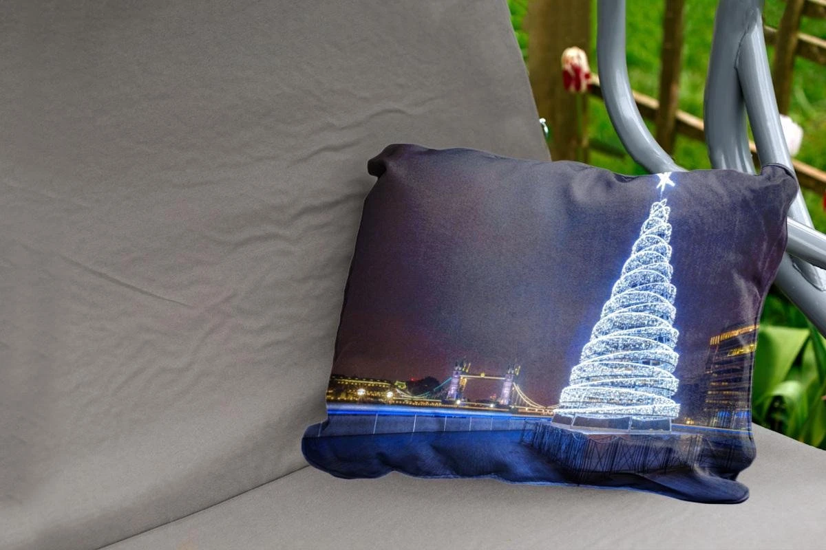 Coussins D’extérieur – Jardin – Un Sapin De Noël Illuminé Au Tower Bridge En Angleterre – 60×40 Cm