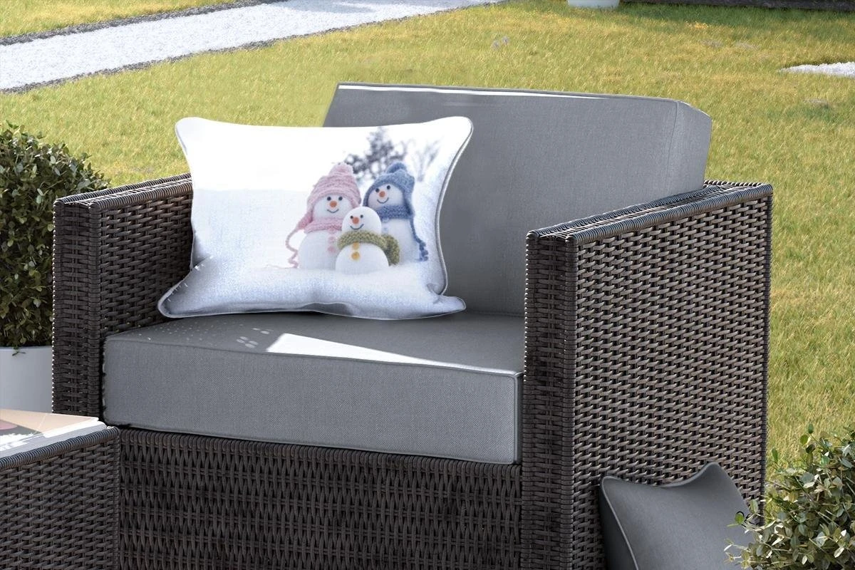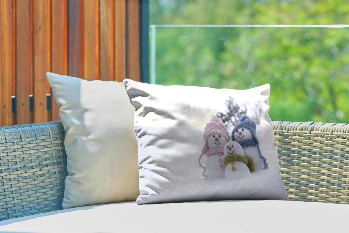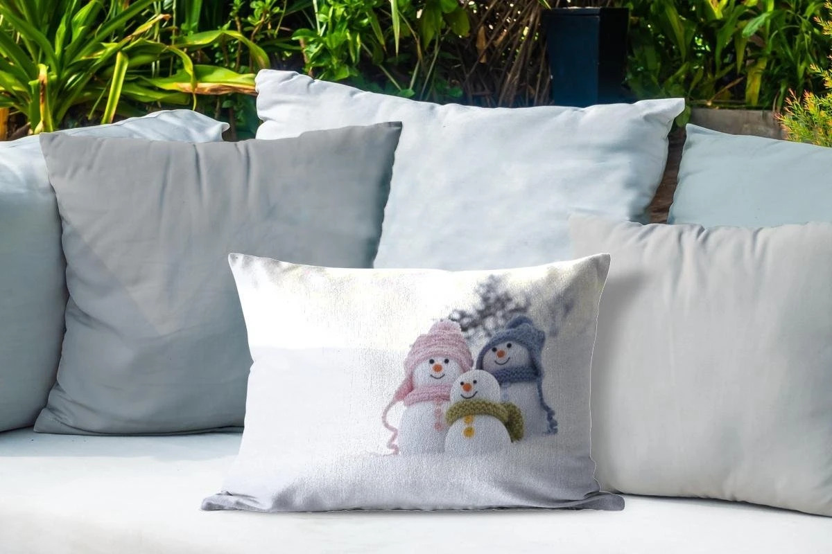 Coussins D’extérieur – Jardin – Une Famille De Poupées De Noël Sur Le Paysage Enneigé – 50×30 Cm