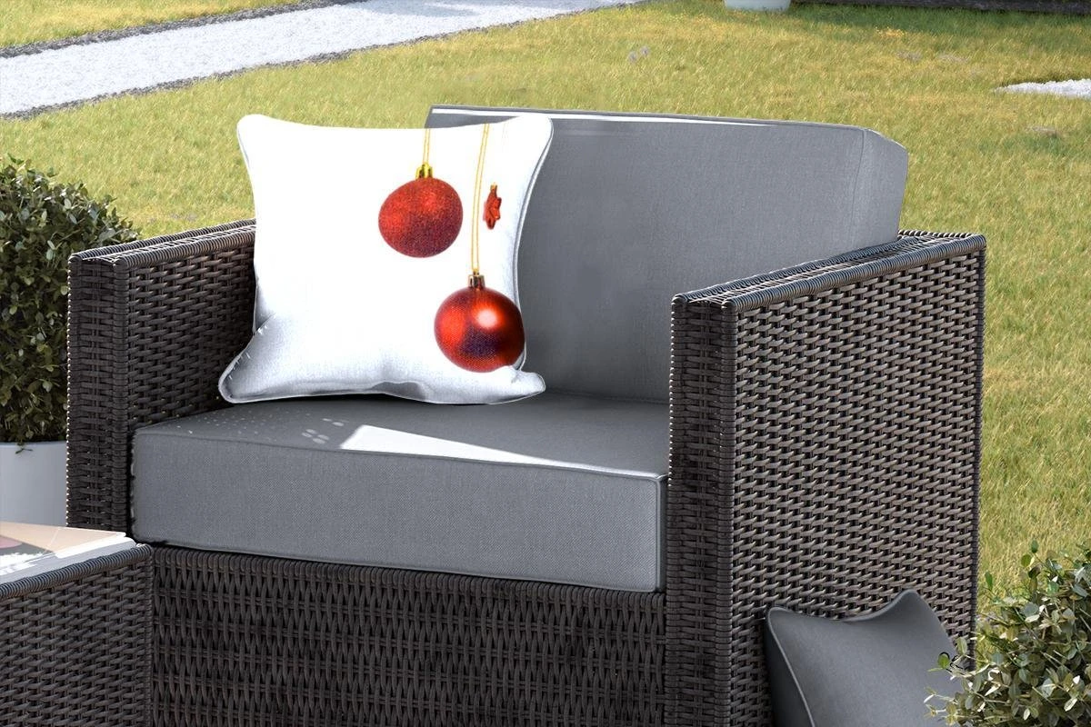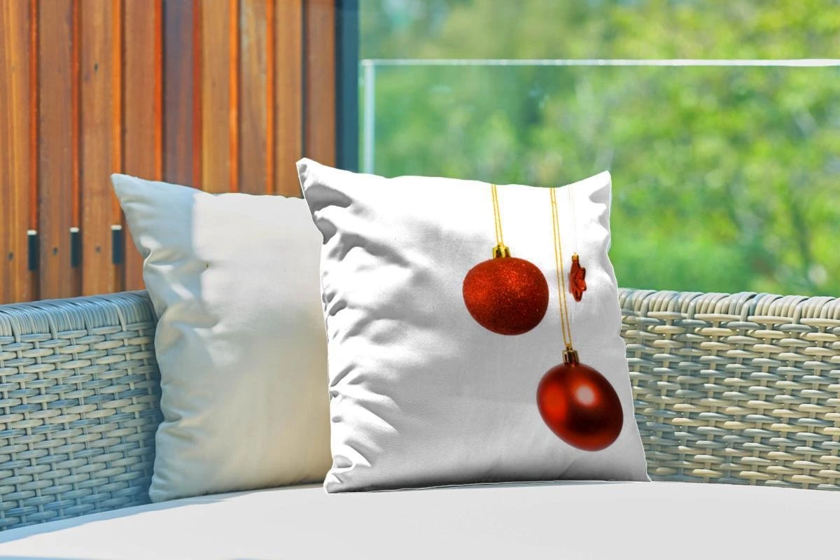 Coussins D’extérieur – Jardin – Une Paire De Boules De Noël Rouges Avec Une étoile De Noël Rouge – 40×40 Cm