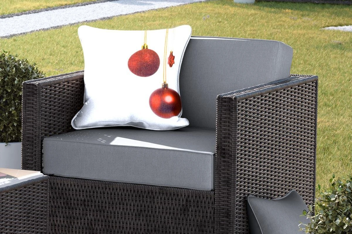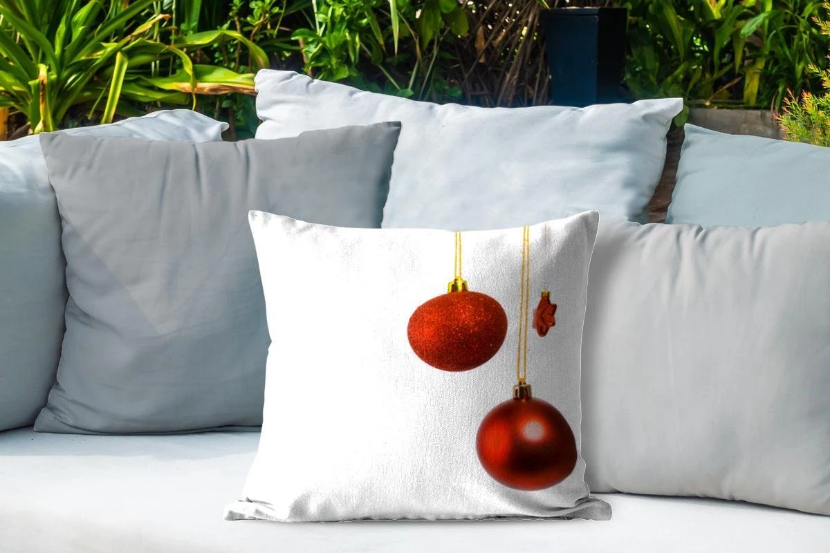 Coussins D’extérieur – Jardin – Une Paire De Boules De Noël Rouges Avec Une étoile De Noël Rouge – 45×45 Cm