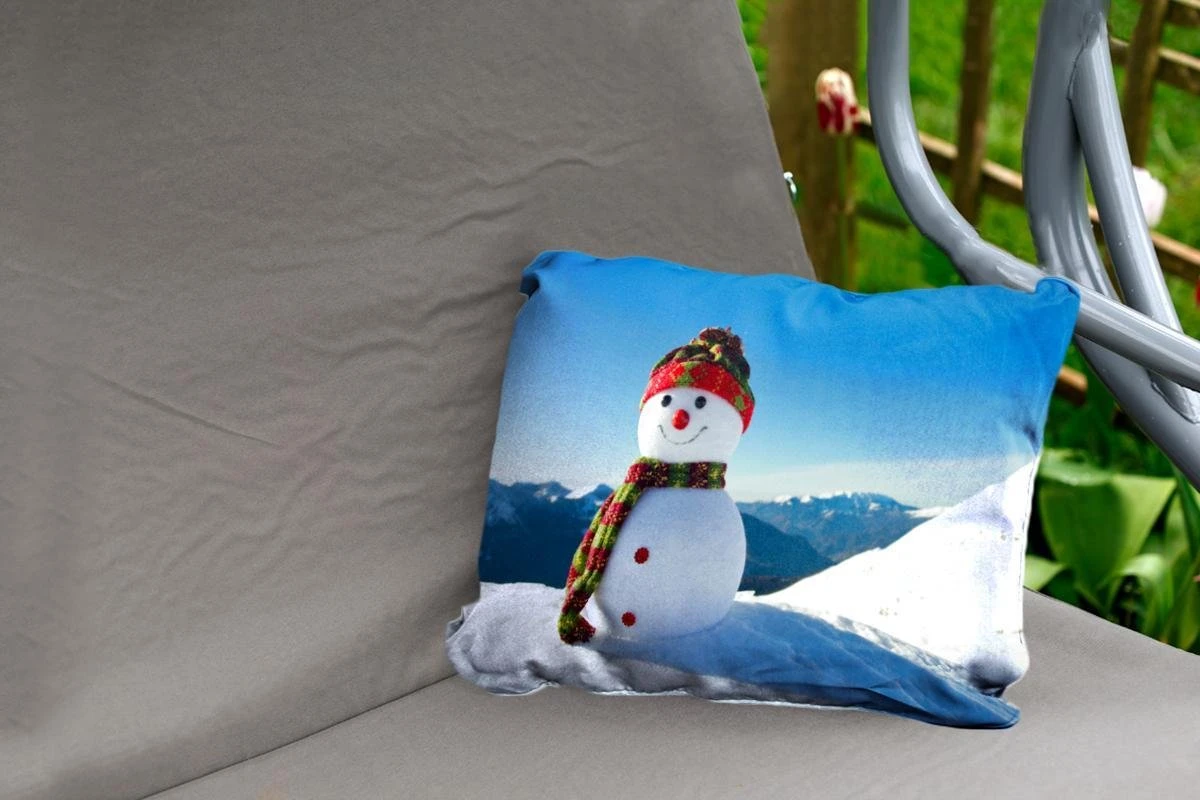 Coussins D’extérieur – Jardin – Une Poupée De Noël Dans Le Paysage Enneigé Pendant L’hiver – 50×30 Cm