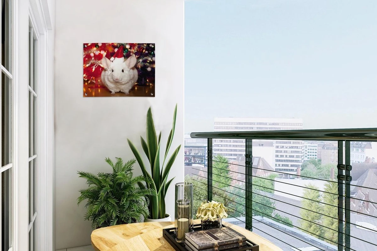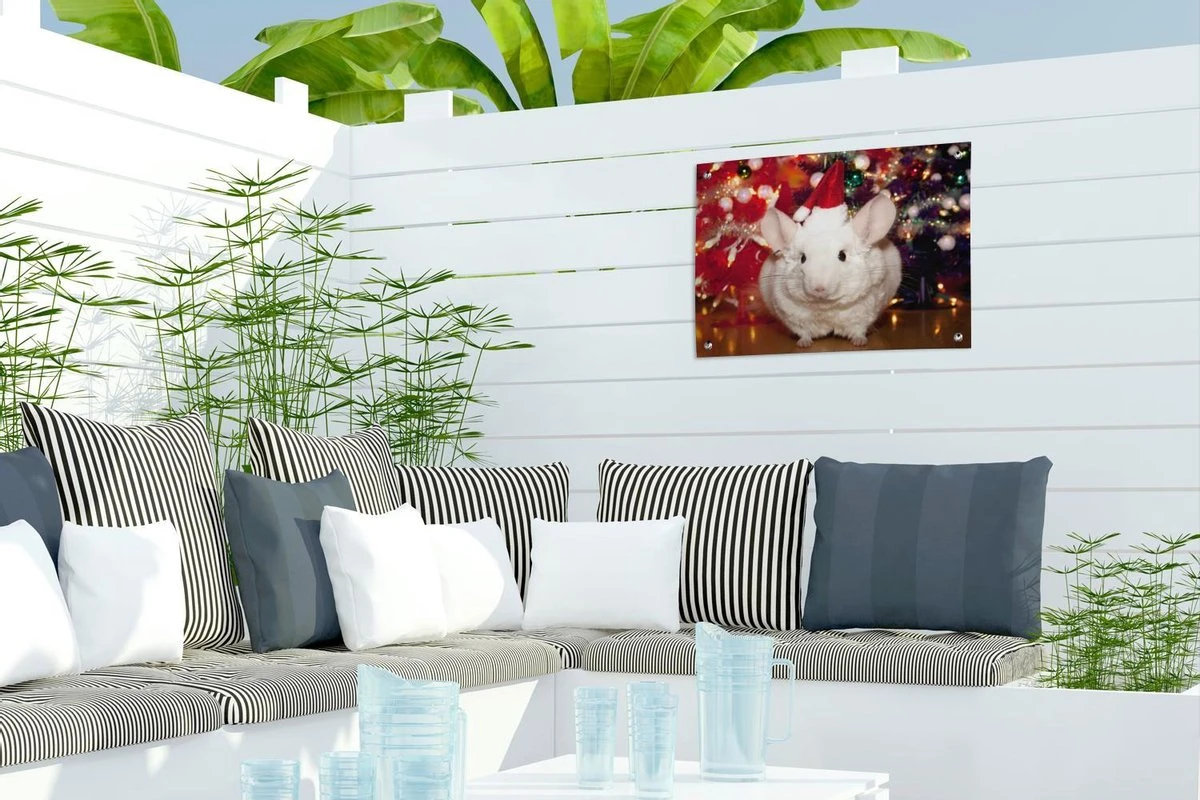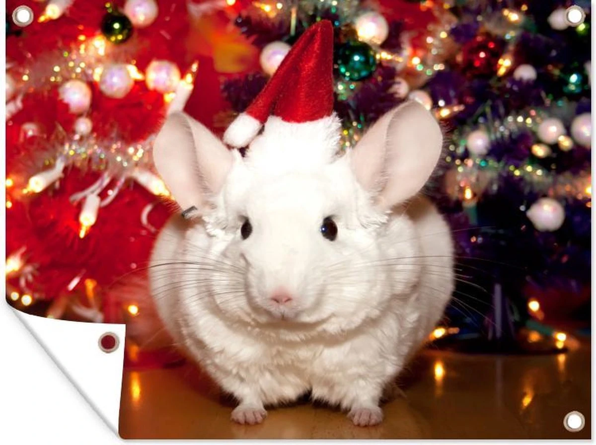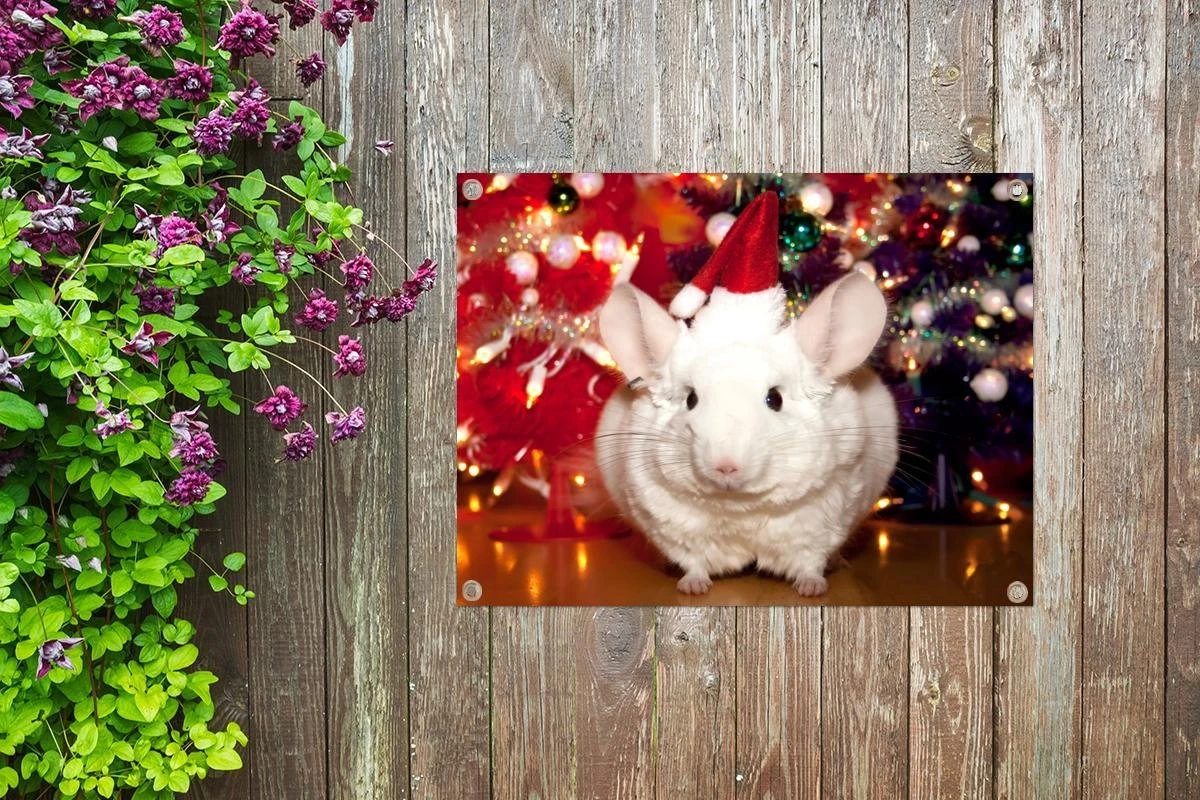 Tableau de jardin – Un Chinchilla Witte coiffé d’un chapeau de Noël – Posters de jardin