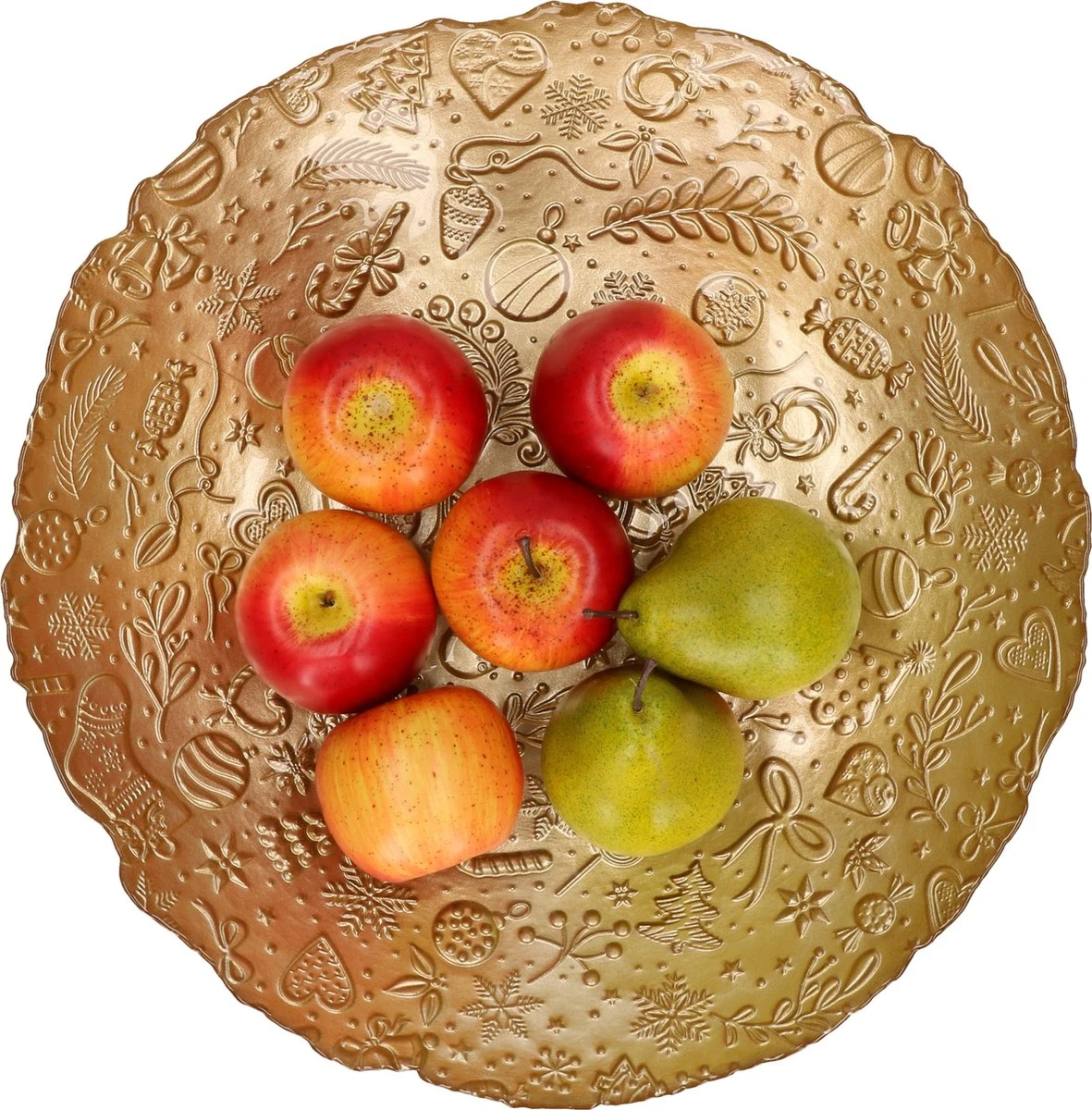 Bol Décoration /corbeille à fruits en verre doré rond D40 x H7 cm. Avec un design de Noël élégant. Bols à Plateau de fruits/ bols de décoration.