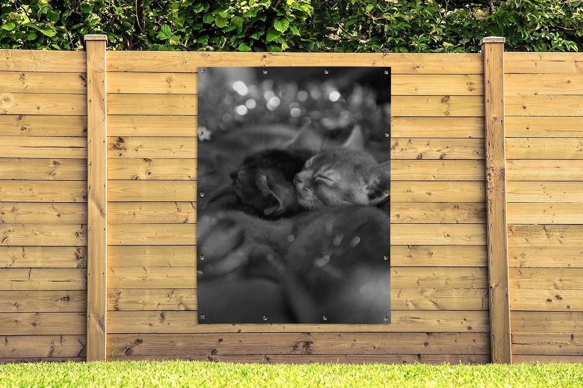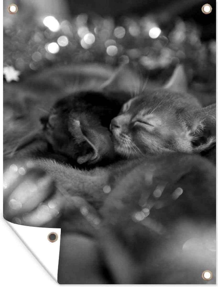 Tableau de jardin – Chatons endormis et maman chat entre les décorations de Noël – noir et blanc – Posters de jardin à l’extérieur