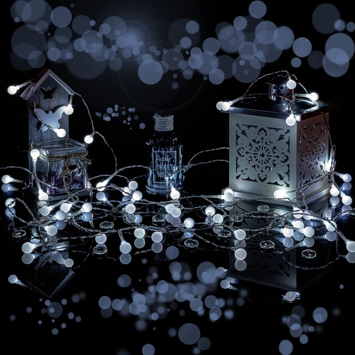 1x guirlande lumineuse party 100 LED, blanc froid, câble transparent