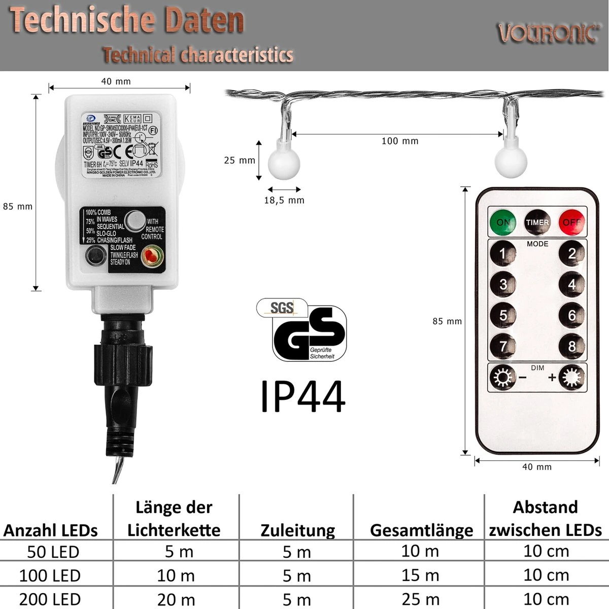 Vous pouvez utiliser cette guirlande lumineuse avec des sphères (chacune d’un diamètre de 15 mm) toute l’année. Utilisez les guirlandes lumineuses en décembre pour le sapin de Noël, en été pour décorer votre balcon ou comme décoration lors de garden-parties ou de mariages. La classe de protection IP44 est étanche aux éclaboussures, ce qui signifie que vous pouvez utiliser le cordon d’éclairage à l’extérieur s’il est suspendu sous abri. De plus, la guirlande lumineuse est équipée d’un crochet pour pouvoir l’accrocher facilement.