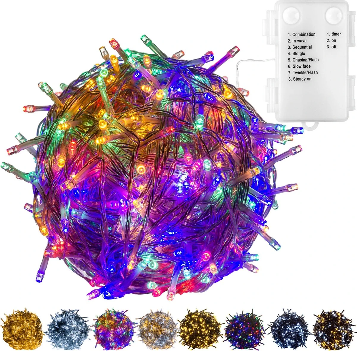 Cette belle guirlande lumineuse (10 mètres) avec 8 modes d’éclairage différents fonctionne avec 3 piles AA, donne une lumière colorée (vert, jaune, rouge et bleu) et dispose de 100 LED sur une guirlande lumineuse. Les élégantes lumières de Noël conviennent à une utilisation intérieure et extérieure couverte. La gracieuse guirlande lumineuse est étanche aux éclaboussures (classe IP44), ce qui la rend parfaite pour une utilisation comme éclairage de balcon, décoration de votre jardin ou idéale pour décorer une fenêtre ou un sapin de Noël.