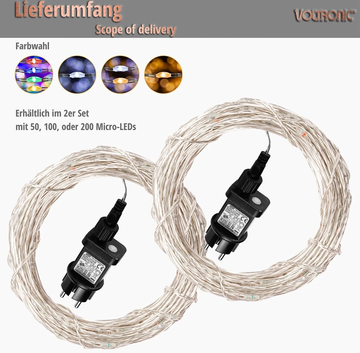 Ces guirlandes lumineuses (lot de 2) avec une lumière blanche chaude et froide créent une atmosphère dans et autour de votre maison.Ces belles guirlandes lumineuses (chacune de 5 mètres de long) fournissent une lumière blanche froide et ont chacune 50 LED. Les lumières de Noël conviennent à une utilisation intérieure et extérieure et sont multifonctionnelles. Les gracieuses guirlandes lumineuses ont une fonction de minuterie et sont résistantes aux éclaboussures (classe IP44), ce qui les rend parfaites pour une utilisation comme éclairage de balcon, pour la décoration à la maison ou dans le jardin.Vous pouvez facilement accrocher les guirlandes lumineuses. La classe de protection IP44 est étanche aux éclaboussures, ce qui signifie que vous pouvez utiliser les cordons d’éclairage à l’extérieur s’ils sont suspendus sous abri. De plus, les LED sont économes en énergie et vous trouverez un bouton sur l’adaptateur avec une fonction de minuterie qui vous permet d’allumer les chaînes pendant 6 heures et de les éteindre pendant 18 heures. Spécification du produit : Longueur du produit : 5 m cmLargeur du produit : 0 cmHauteur du produit : 0 cmPoids du produit : 0,28 0 du produit : Chaud froid Longueur du colis : 17 cmLargeur du colis : 9,5 cmHauteur du colis : 7,5 cmContenu du colis 2 x guirlandes lumineuses (50 LED, 5 mètres de long) 1 x manuel d’instructions