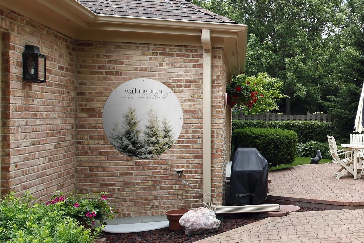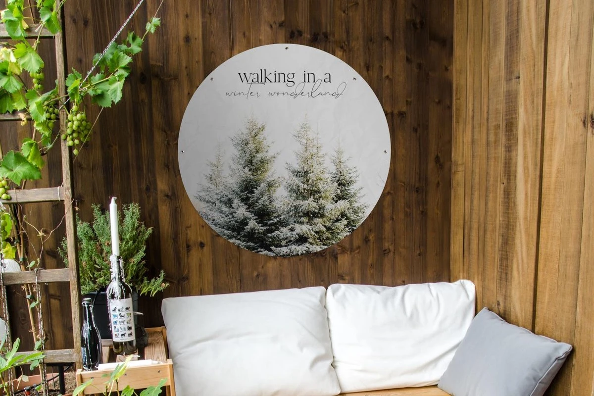 Garden Circle Noël – Hiver – Sapin De Noël – 90×90 Cm – Affiche Ronde De Jardin – Extérieur