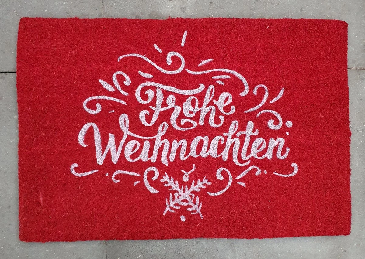 Quoi de mieux pour accueillir vos invités de Noël qu’avec ce joyeux paillasson de House of Seasons! Le dessin sur le tapis est complètement dans l’esprit de Noël, en particulier avec le texte approprié « Frohe Weihnachten » dessus. Très joli en combinaison avec la couleur rouge ! Le tapis de coco a une taille de L60 x W40 cm.