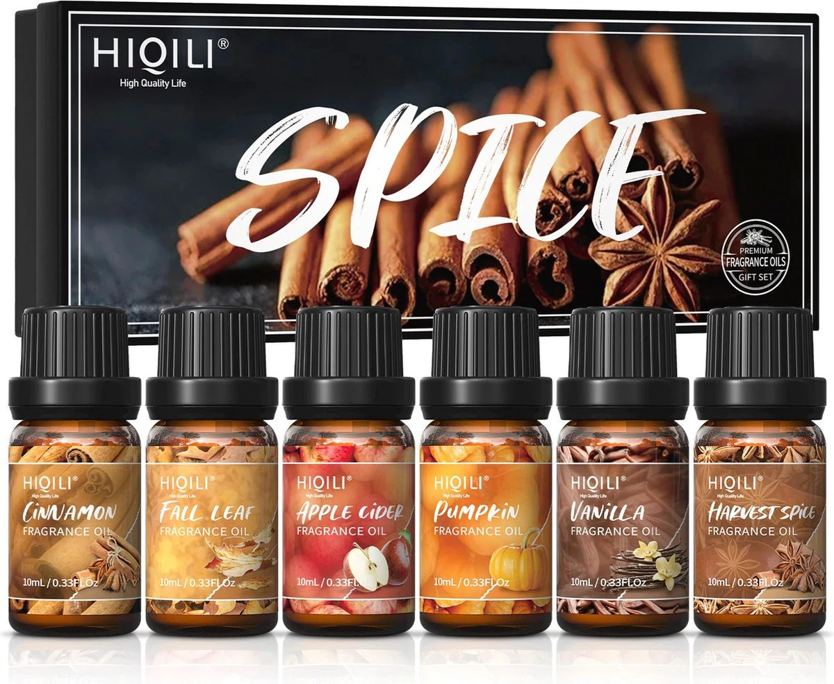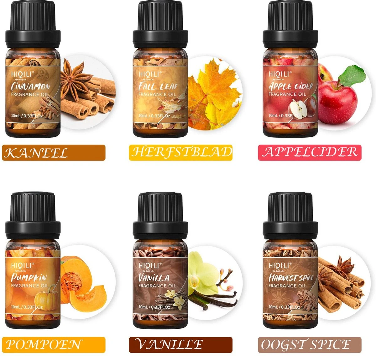 Ces 6 huiles essentielles (cannelle, feuille d’automne, cidre de pomme, potiron, vanille et épice de récolte) sont fabriquées à partir d’huiles essentielles 100% pures et des meilleures matières premières naturelles.