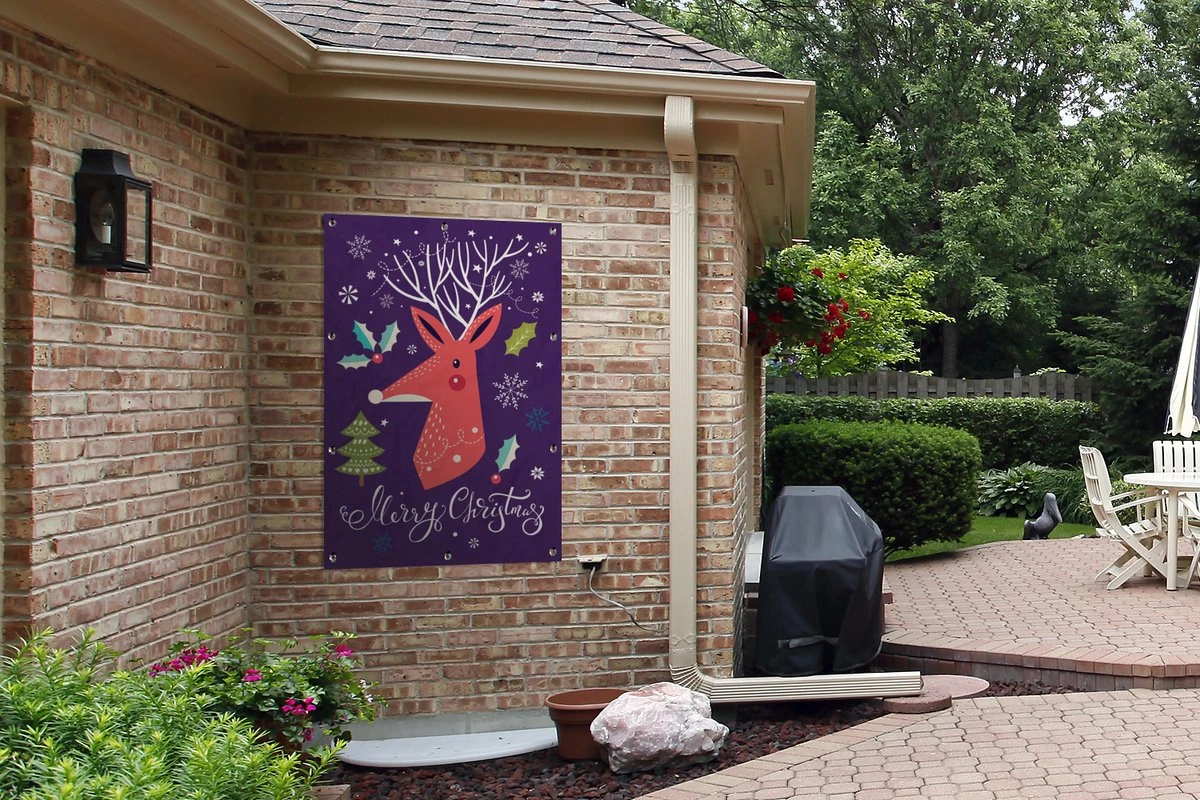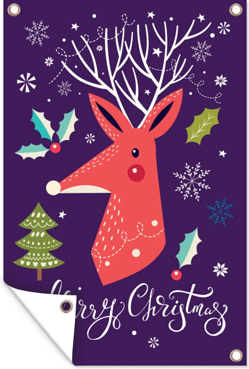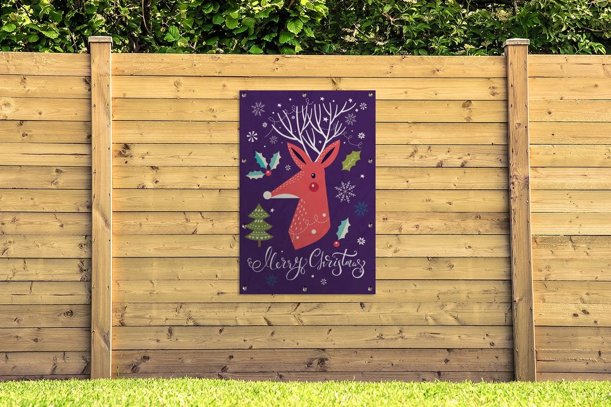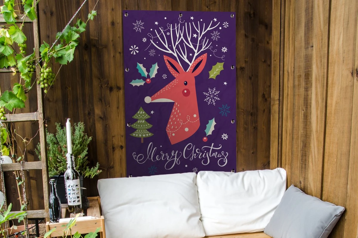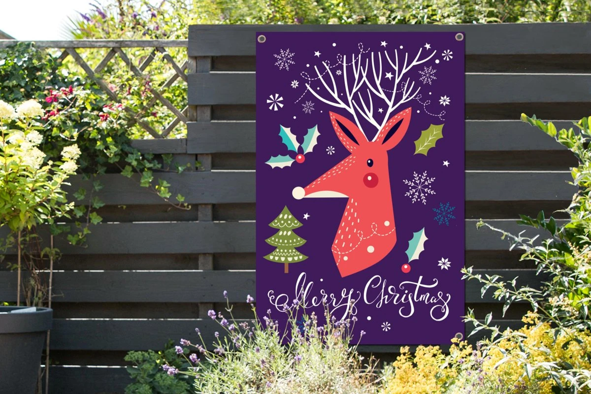 Illustration De Noël D’un Renne Orange Avec La Citation Affiche De Jardin Joyeux Noël En Vrac 80×120 Cm – Toile De Jardin / Toile D’extérieur / Peintures Pour L’extérieur (décoration De Jardin)