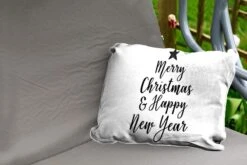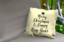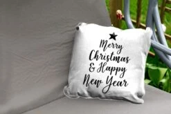 Coussins D’extérieur – Jardin – Citation Arbres De Noël Fraîchement Coupés Sur Fond Blanc – 45×45 Cm