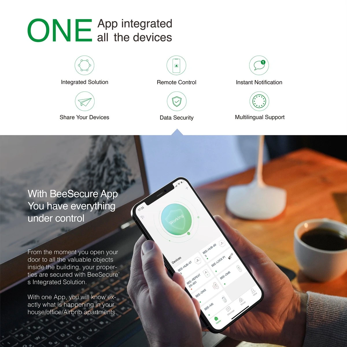 2. TÉLÉCOMMANDE COMPLÈTE : Le capteur de fenêtre de porte BeeSecure surveille l’état de votre porte/fenêtre 24h/24 et 7j/7. Une fois l’alarme activée, vous recevrez des notifications push et prendrez des mesures immédiates pour prévenir les risques potentiels.