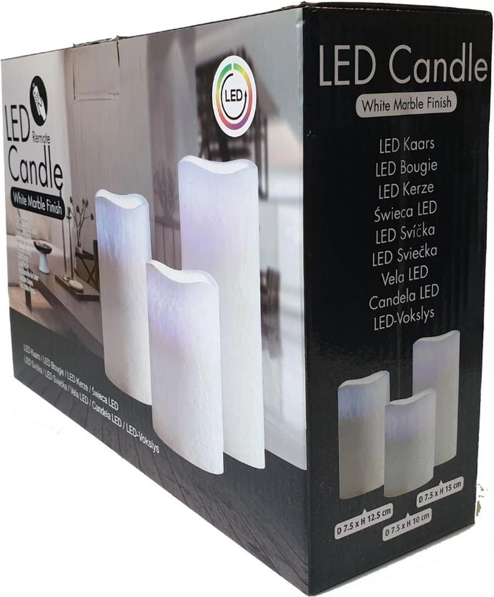| Contenu de l'emballage | LED Kaarsen SET 3 Pièces SANS PILES, Changement de couleur – Bougie – Bougies – Bougie allumée – Bougies de Noël – Groot – Grande bougie |