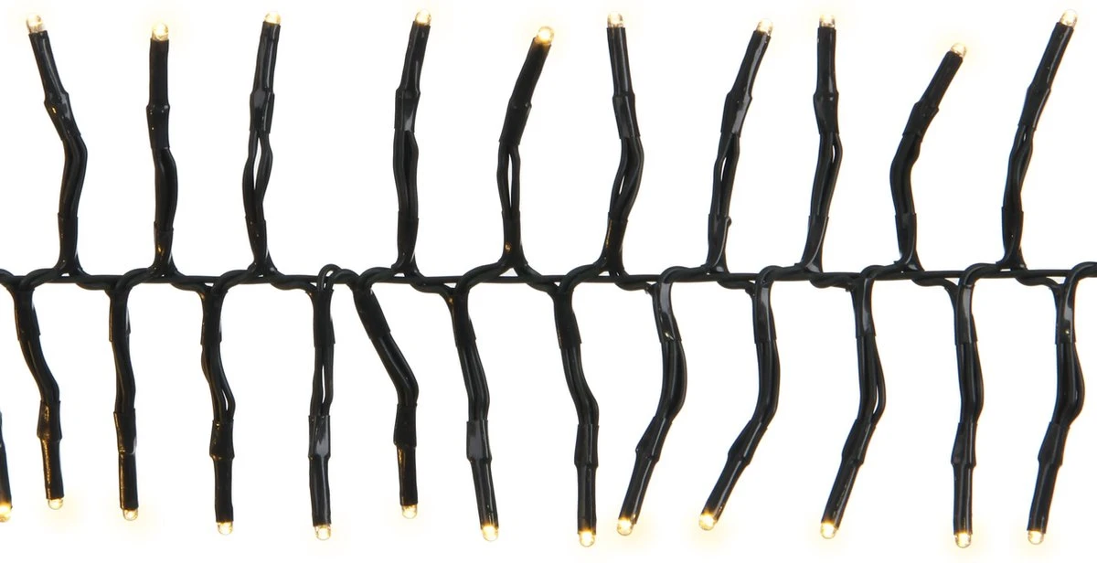 La longueur avec les lumières est de 560 cm et la longueur du transformateur au début du cordon lumineux est de 3 mètres. Donc, beaucoup d’espace de votre prise à, par exemple, votre arbre de Noël ou votre guirlande, très pratique.