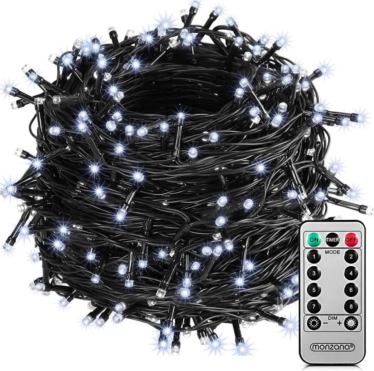 Avec la guirlande lumineuse décorative de monzana® , vous pouvez faire entrer votre maison dans l’atmosphère de Noël en un rien de temps. 200 LED de différentes couleurs de lumière créent immédiatement une atmosphère lumineuse agréable. La guirlande lumineuse peut être facilement actionnée avec une télécommande. Mais vous pouvez également régler les lumières de Noël sur l’adaptateur lui-même.