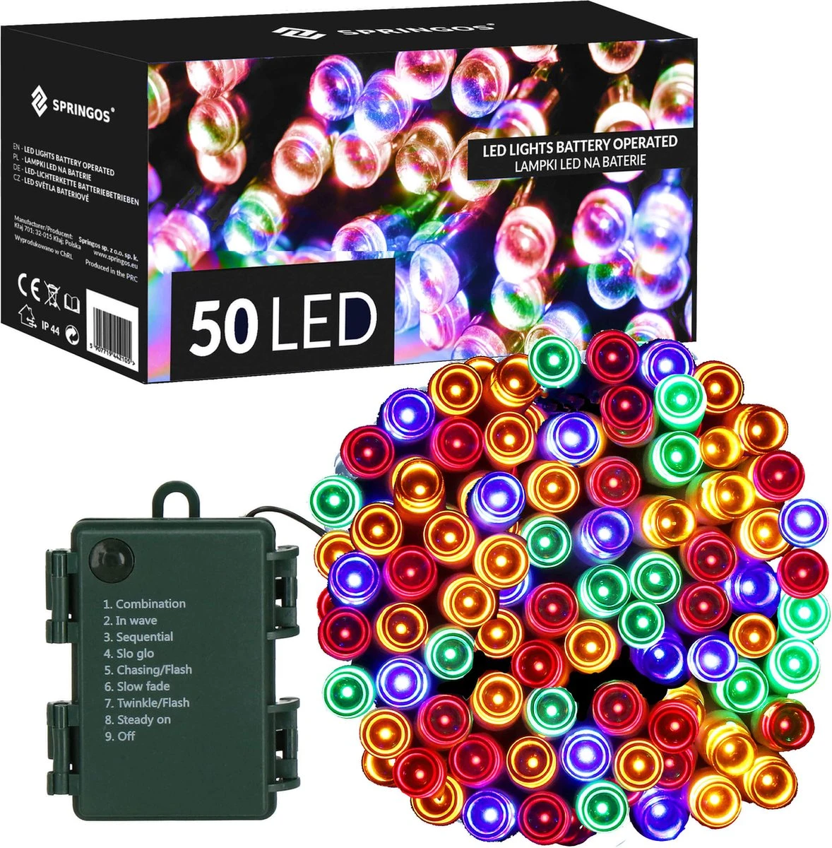 Les lumières de Noël Springos sont équipées de 50 LED économes en énergie qui ont une classe d’étanchéité (IP44), de sorte qu’elles peuvent être accrochées à l’intérieur et à l’extérieur. Gagner gagner! C’est non seulement moins cher, mais aussi plus économe en consommation d’énergie ! Les Éclairage de Noël ont 8 fonctions d’éclairage différentes. Les lumières de Noël ont également un marquage CE et peuvent être utilisées en toute sécurité.