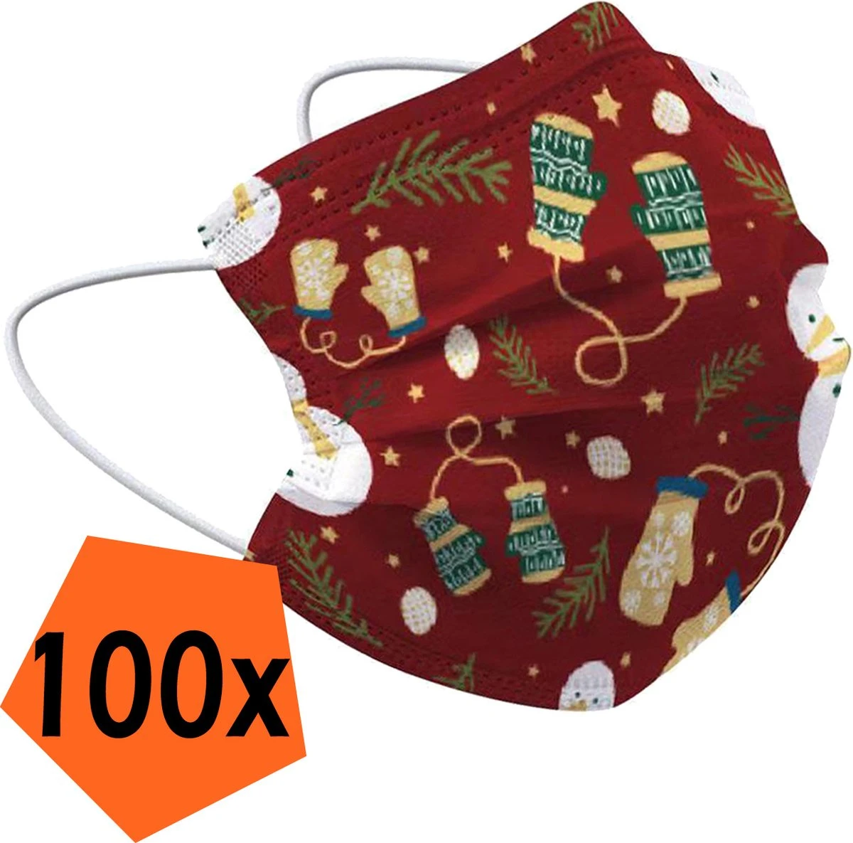Masque Buccal De Noël Jetable Rouge – Masque Buccal Jetable Non Medisch Mitaines – Masque Buccal De Noël Jetable Universel – 100 Pièces