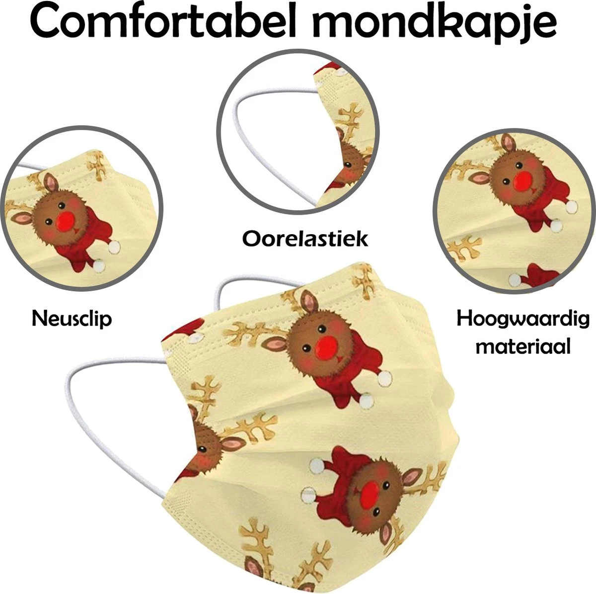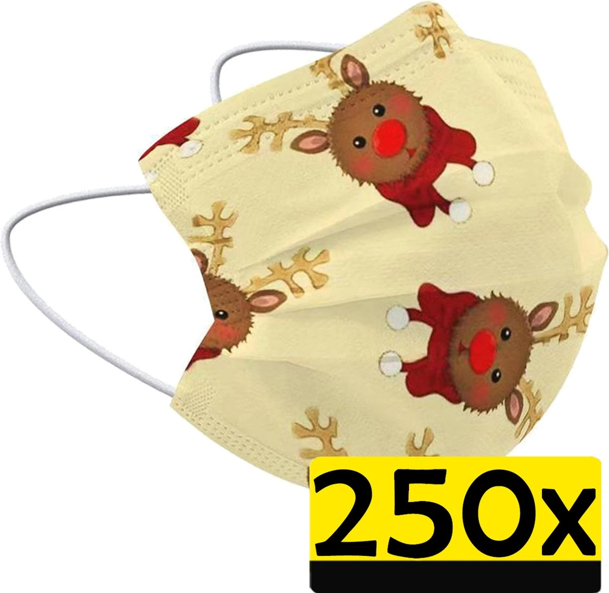 Masque de Noël avec imprimé renne (250 pièces), adapté aux espaces publics intérieurs et au dîner de Noël ! (non médical)