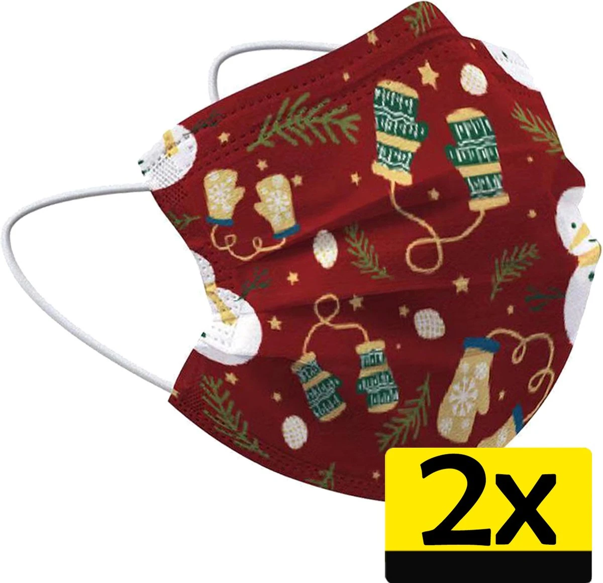 Bonnet buccal de Noël jetable avec imprimé moufles (2 pièces), adapté aux espaces publics intérieurs et au dîner de Noël ! (non médical)