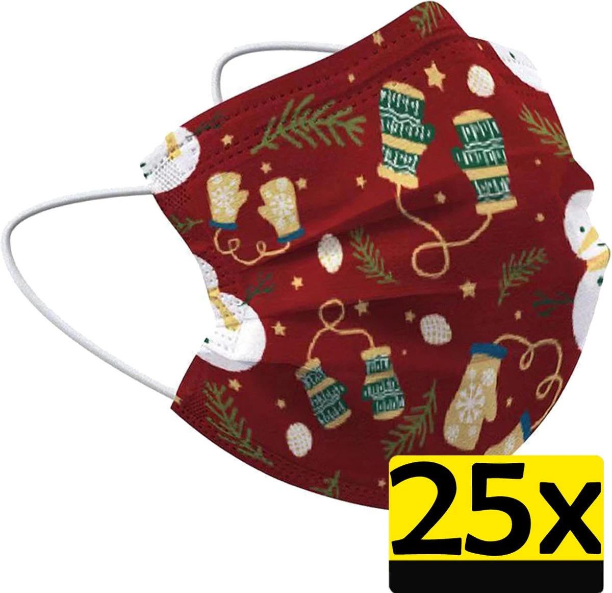 Bonnet buccal de Noël jetable avec imprimé moufles (25 pièces), adapté aux espaces publics intérieurs et au dîner de Noël ! (non médical)