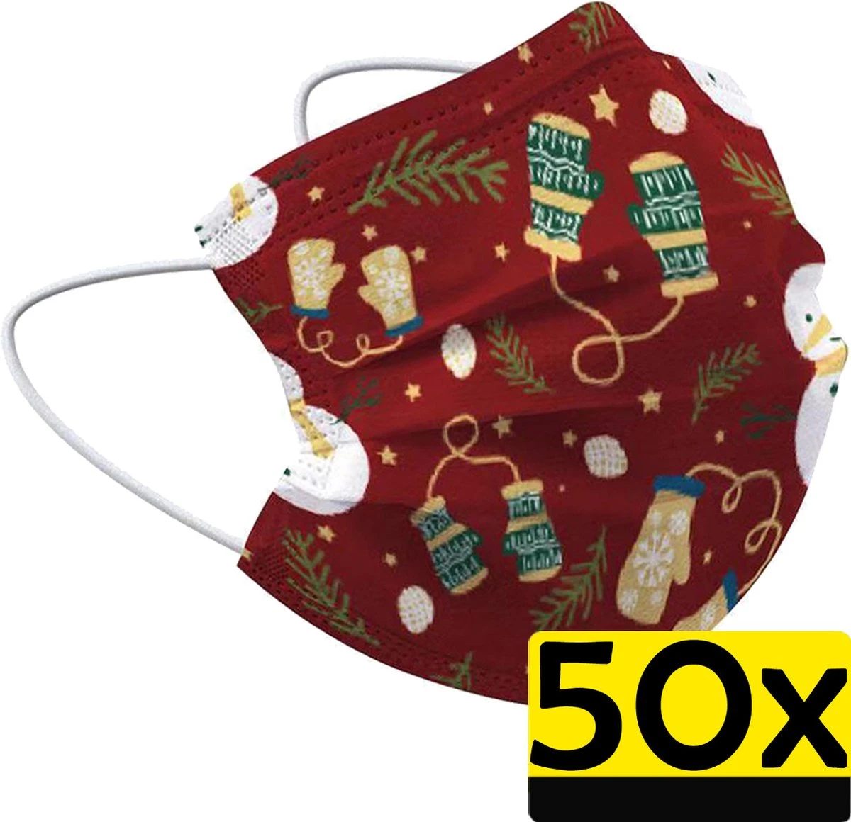 Bonnet buccal de Noël jetable avec imprimé moufles (50 pièces), adapté aux espaces publics intérieurs et au dîner de Noël ! (non médical)