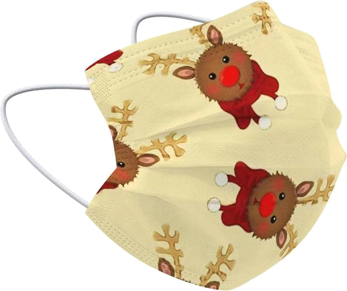 Masque facial de Noël jetable avec imprimé renne, adapté aux espaces publics intérieurs et au dîner de Noël ! (non médical)