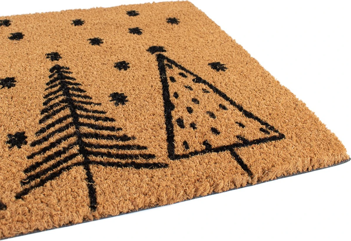 Paillasson – Paillasson – Tapis De Noël – 60cm X 40cm X 1.5cm (LxlxH) – Marron Avec Des Sapins De Noël Et Des étoiles