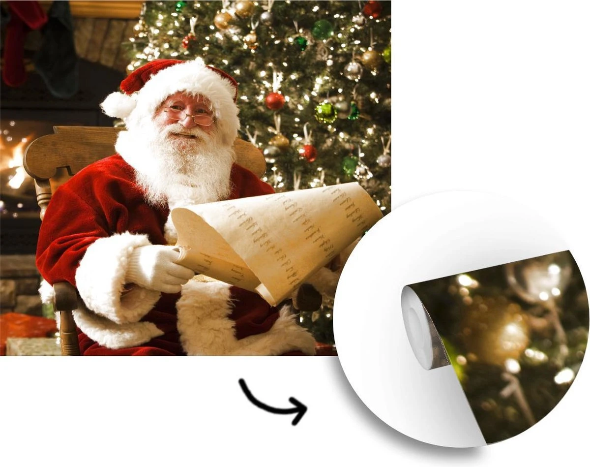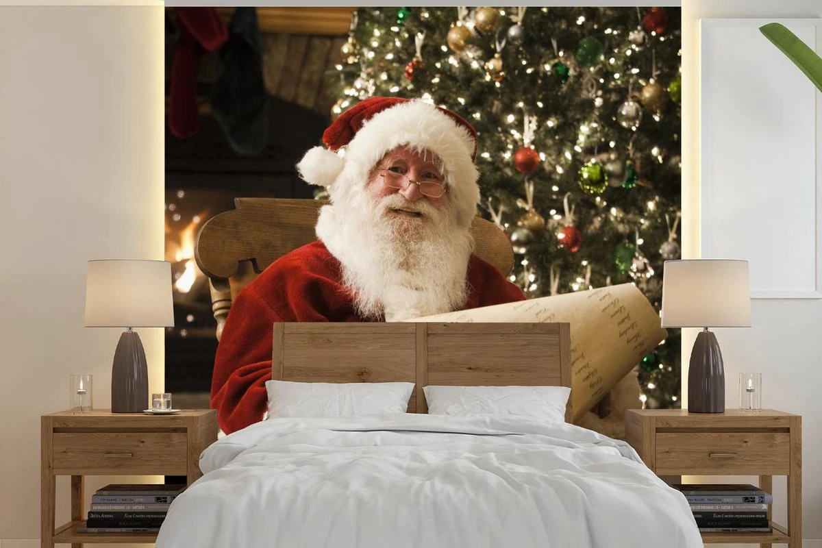 Papier Peint Photo Peint Photo Vinyle – Le Père Noël Vérifie Son Cadre Largeur 220 Cm X Hauteur 220 Cm – Tirage Photo Sur Papier Peint (disponible En 7 Tailles)