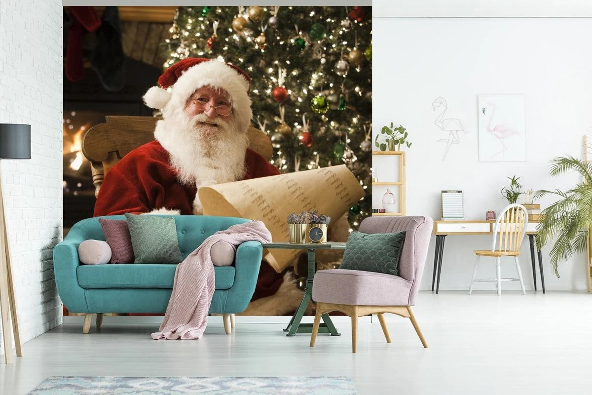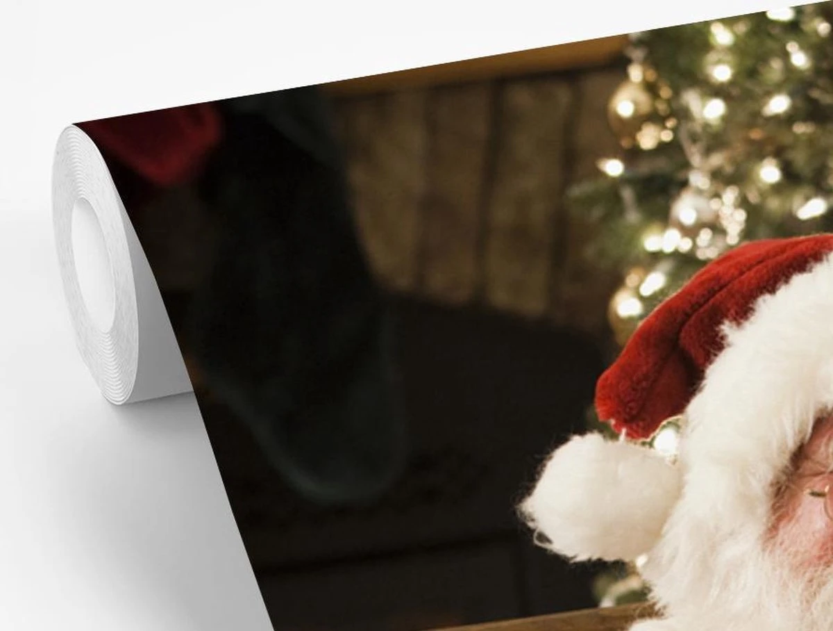 Papier Peint Photo Peint Photo Vinyle – Père Noël Vérifie Son Cadre Largeur 280 Cm X Hauteur 280 Cm – Tirage Photo Sur Papier Peint (disponible En 7 Tailles)