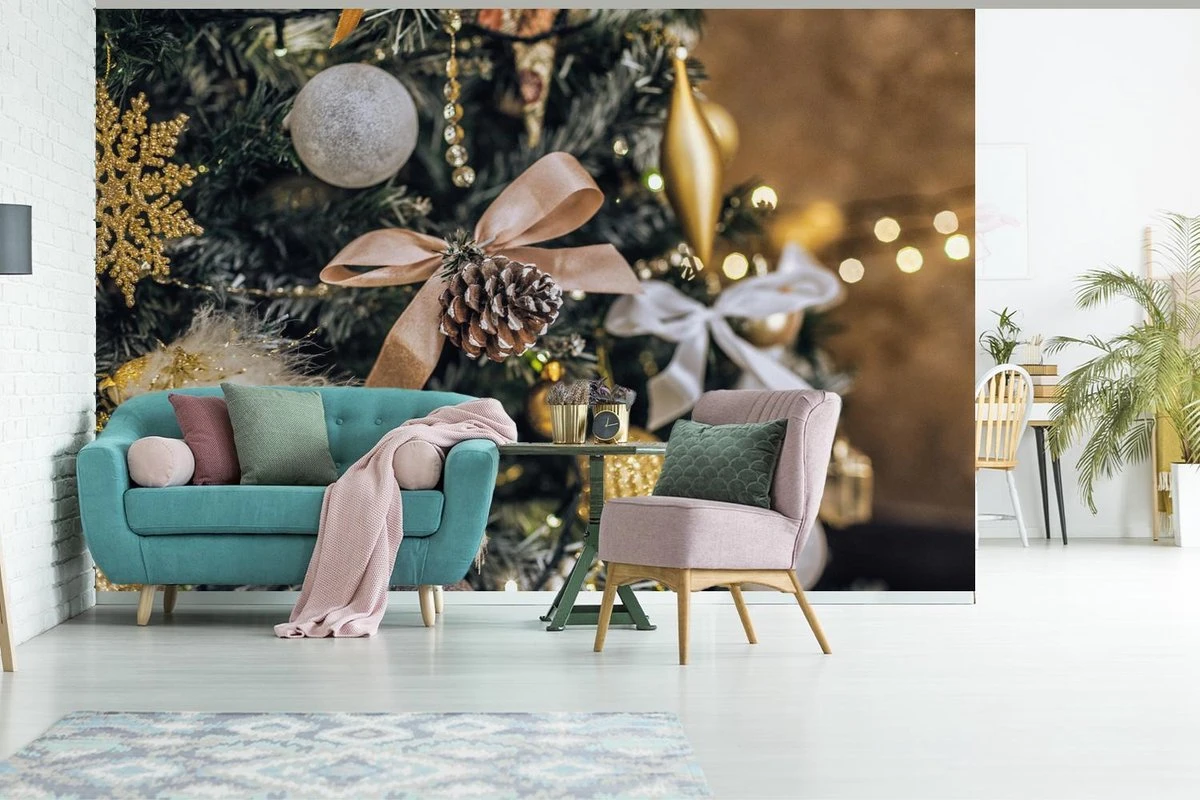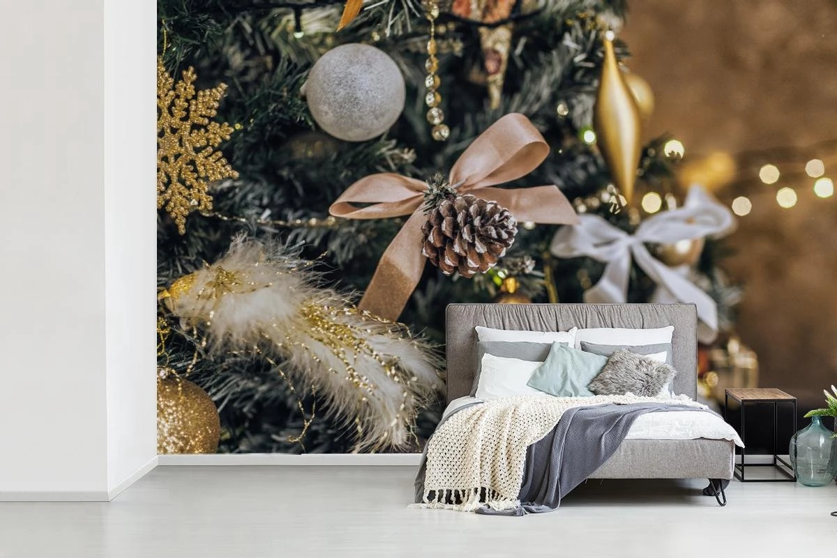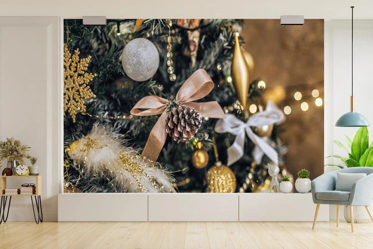 Papier Peint Photo Vinyle – Un Gros Plan De Décorations De Noël Du Sapin De Noël Largeur 600 Cm X Hauteur 400 Cm – Tirage Photo Sur Papier Peint (disponible En 7 Tailles)