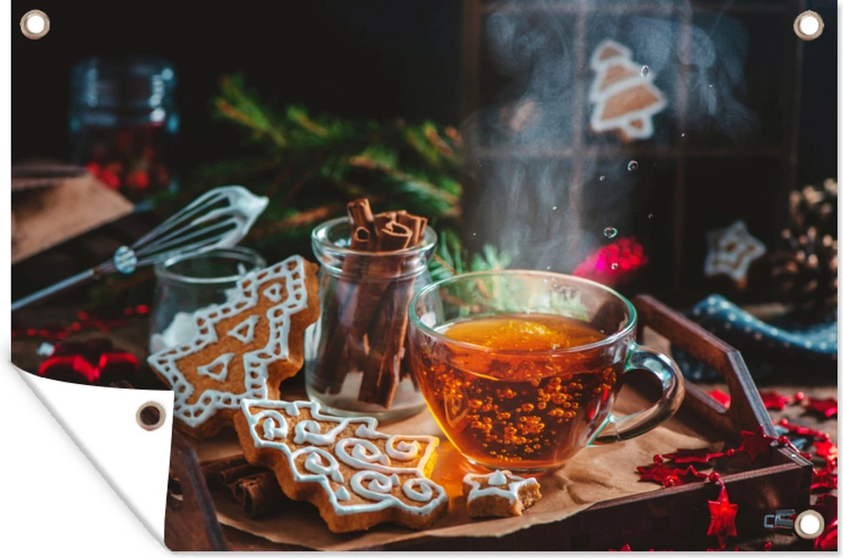Plateau En Bois Avec Thé Et Biscuits De Noël Affiche De Jardin Toile En Vrac 90×60 Cm – Toile De Jardin / Toile D’extérieur / Peintures Pour L’extérieur (décoration De Jardin)