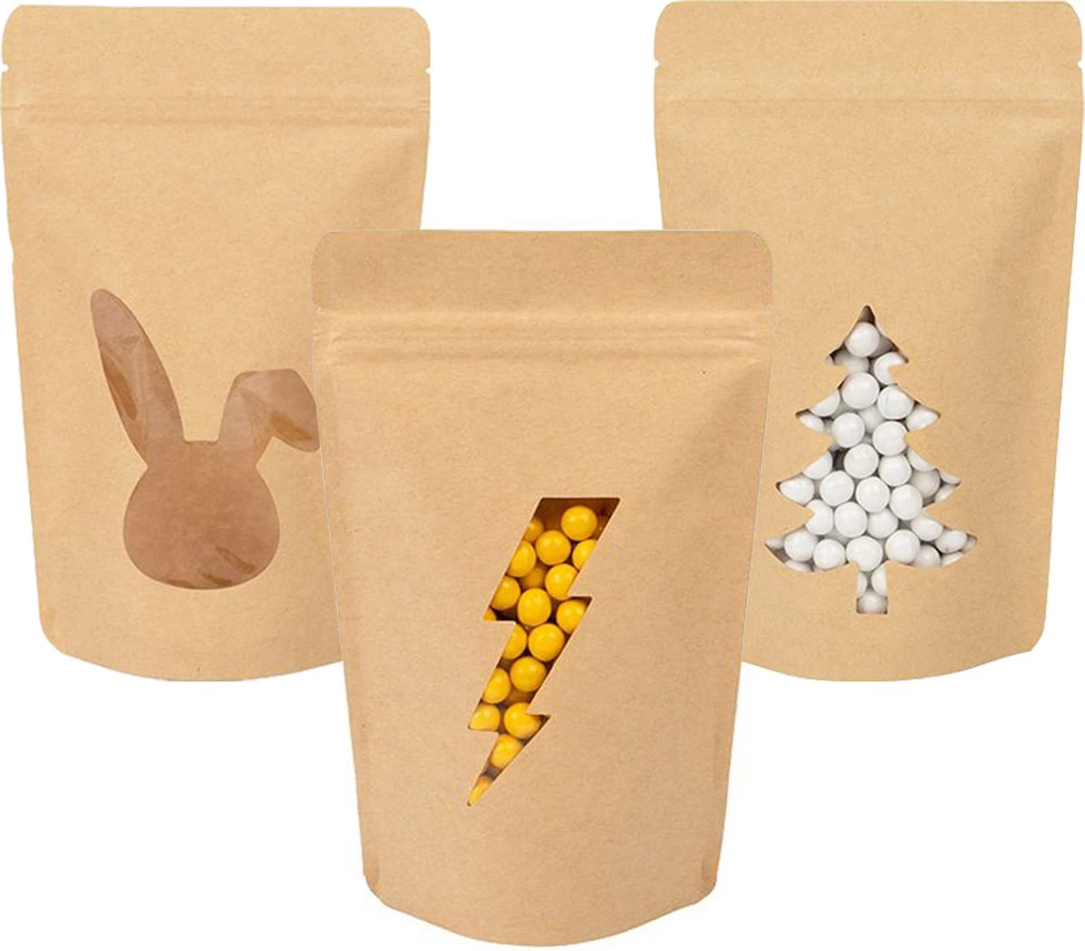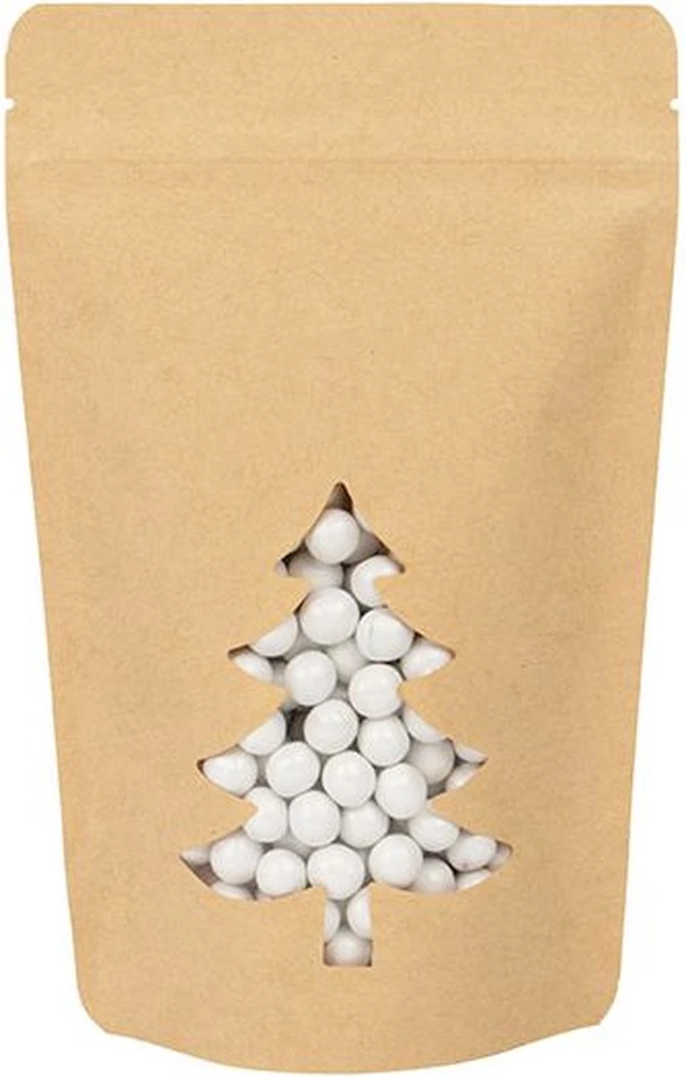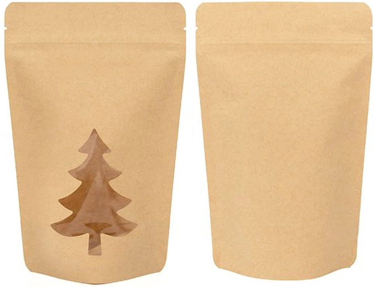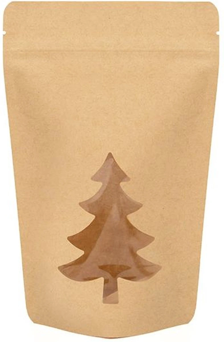 Pochettes Stand Up Kraft Avec Fenêtre Sapin De Noël 13×7.9×20.6 Cm (25 Pièces)