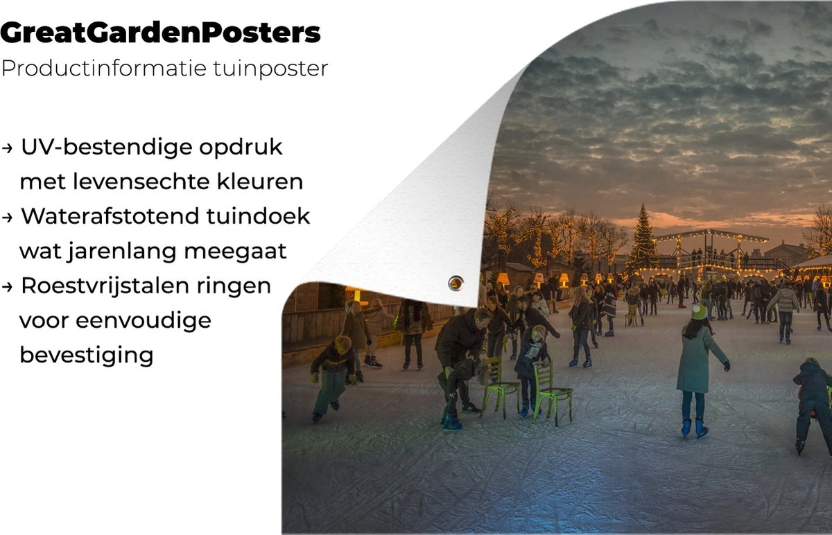 Les affiches de jardin, également appelées toile de jardin, sont des affiches spécialement adaptées pour être suspendues à l’extérieur. Cette nappe de jardin peut donc prendre une raclée. La voile Bisonyl a été utilisée pour cette affiche extérieure. Cette voile est une bâche enduite avec une belle finition. L’affiche de jardin est résistante aux UV, elle ne se décolore donc pas au soleil. Plusieurs anneaux ont été placés dans la toile pour que vous puissiez facilement l’accrocher! Le tissu peut résister aux différentes conditions météorologiques et durera au moins 3 ans.