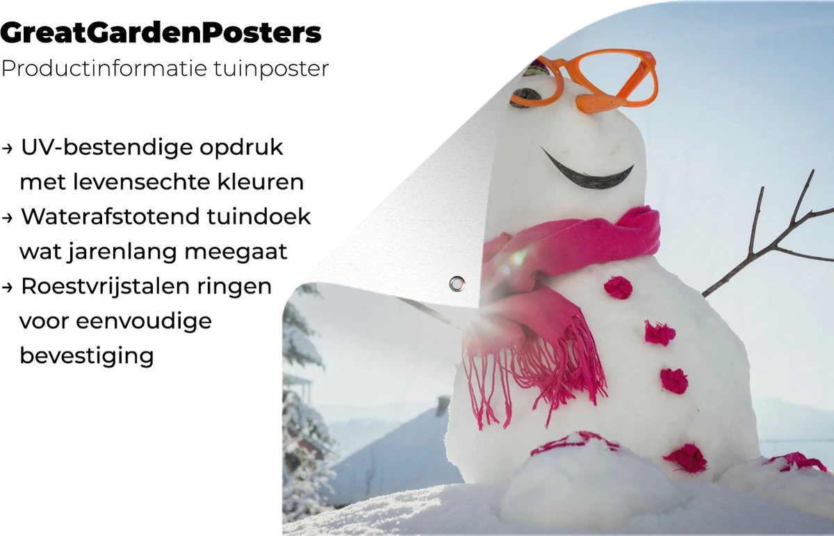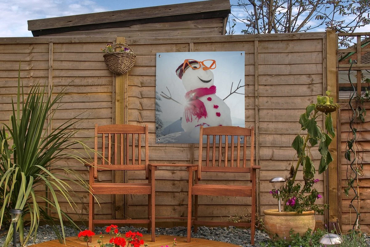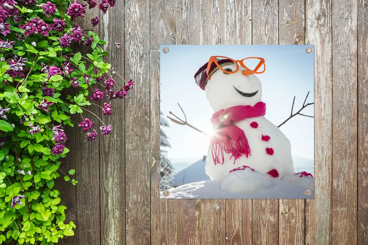 Tableau de jardin – Un bonhomme de neige avec le soleil derrière lui crée une ambiance de Noël – Posters de jardin