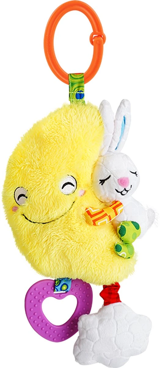 Il a un groupe qui, en le tirant, fait une musique soft . il peut être accroché sur le côté du lit de votre bébé ou sur la poussette.
